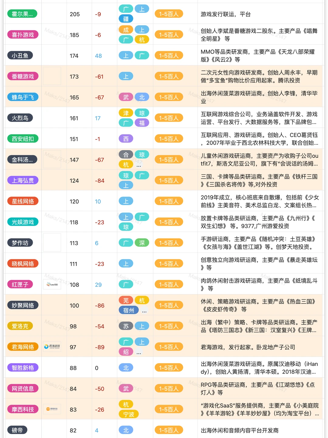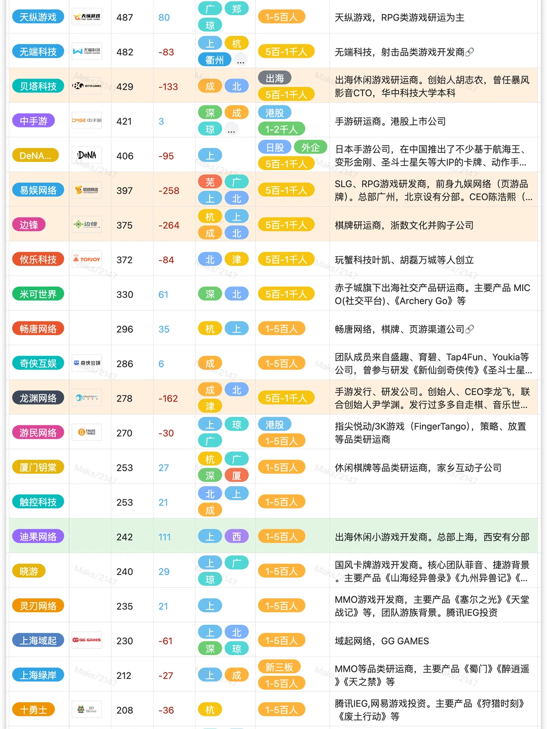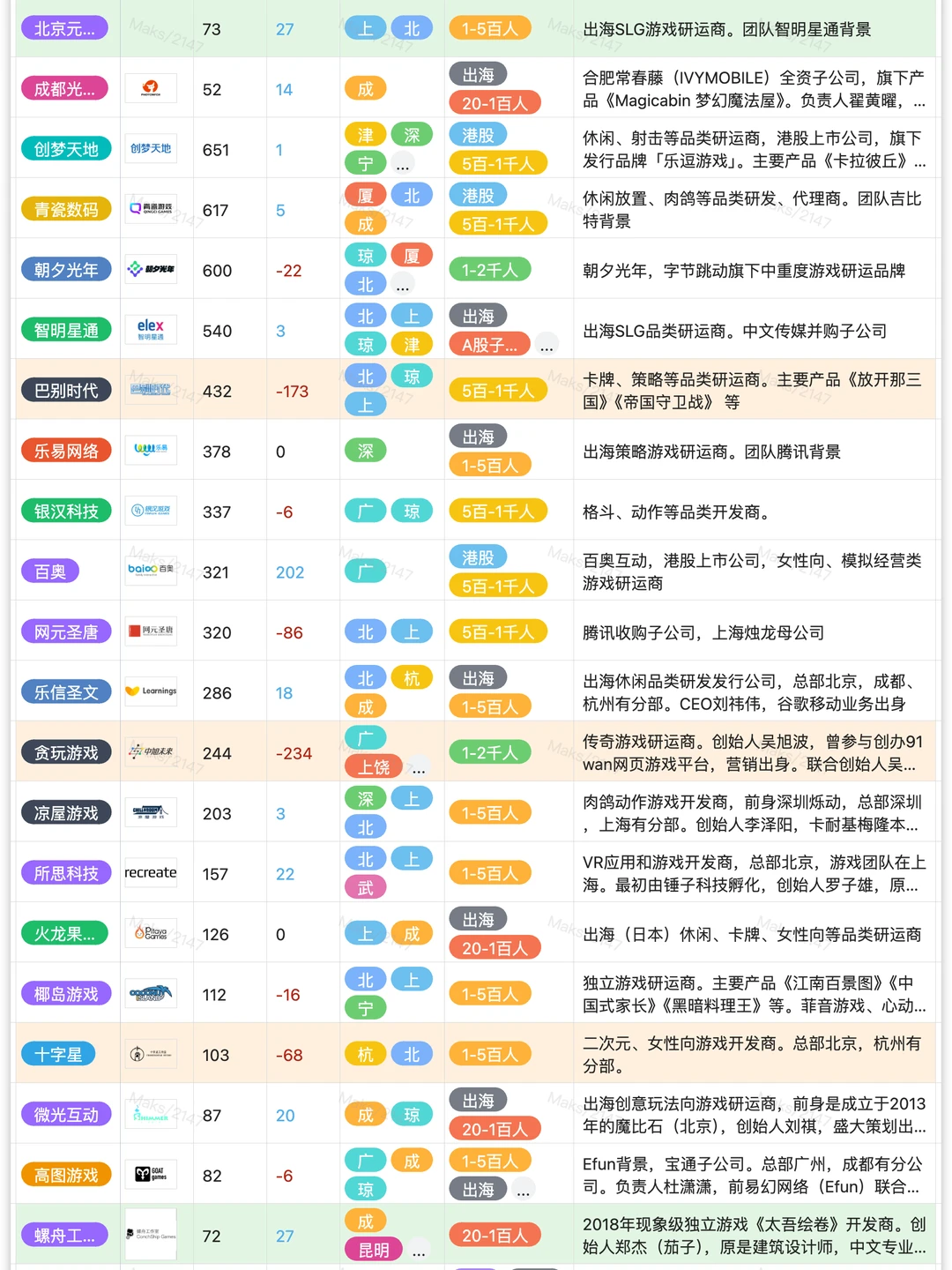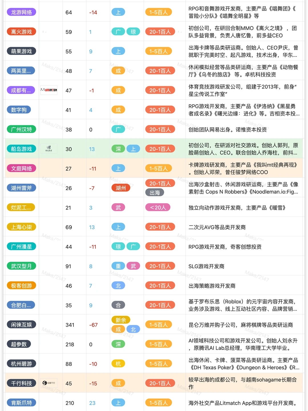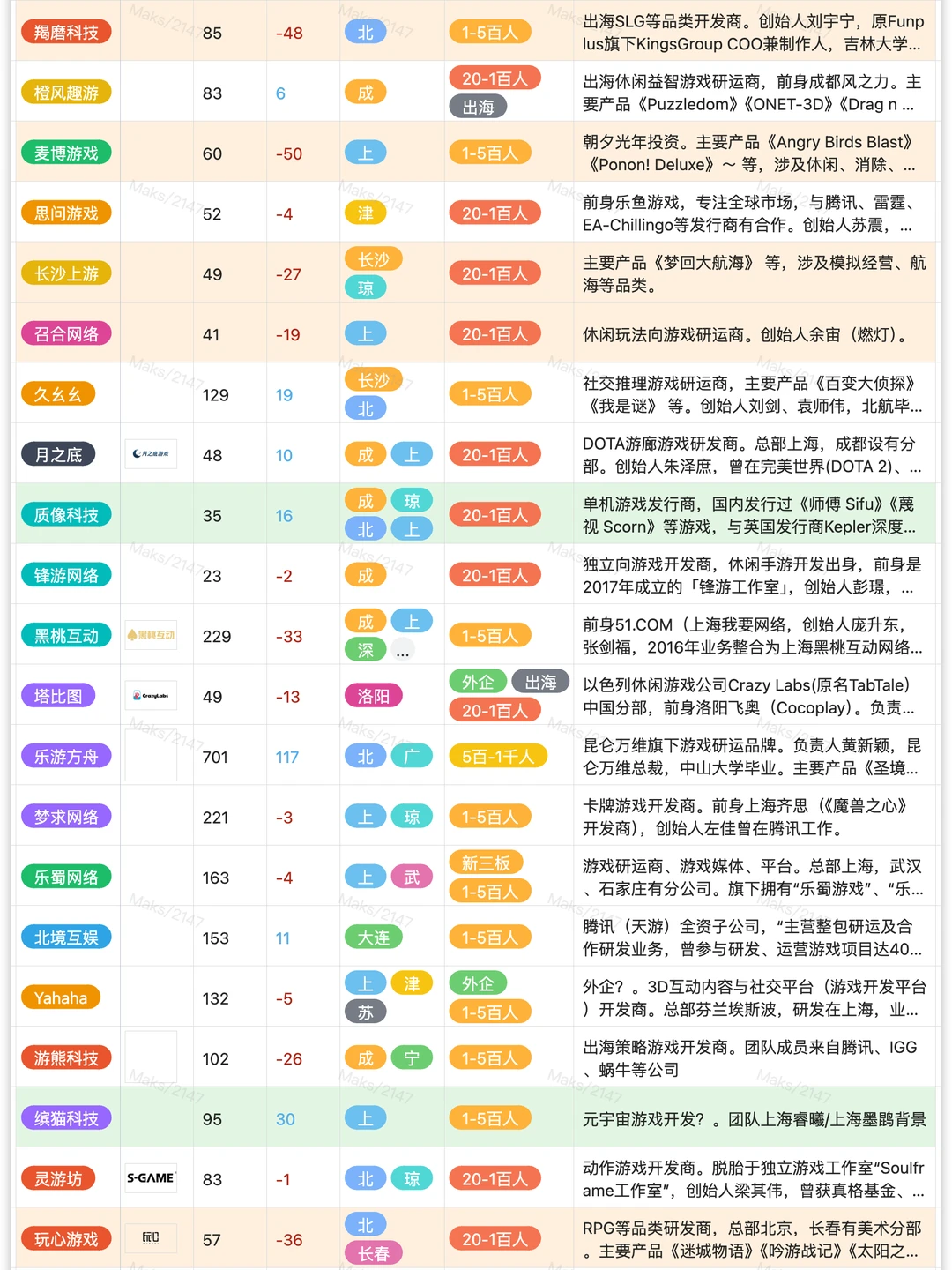 进入年中,各家公司已陆续填报2023年年报,游鲨统计了各公司2022年和2023年社保人数变动情况,供大家求职参考。(数据来源:游鲨游戏行业资料共享文档) 本期绝大多数游戏公司社保人数已公示和统计,可以较为全面地反应各公司人数增减情况。本期笔记也将是人数增减统计系列最后一期。后面将按照游戏类型、地区等推出新系列笔记,欢迎关注~ (本笔记公司人数,是指已公示2023年年报的主体的社保人数,非公司全部人数;2023年社保人数是指2023年末公司社保人数)