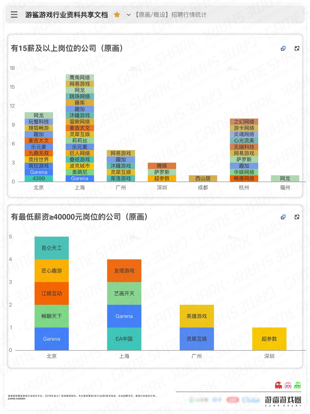 游戏岗位招聘行情统计系列(薪资等为各公司招聘数据,与实际情况可能有出入,仅供参考) [种草R]数据来源:游鲨游戏行业资料共享文档 [拔草R]获取方式:笔记关联的群