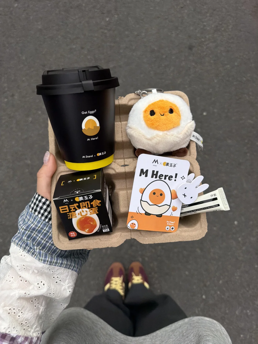 咖啡界最意想不到的联名出现了!! M Stand✖️美玉子!我爱喝的咖啡和我爱吃的溏心蛋联动了! 周边还真送蛋!!谁有你俩会玩啊哈哈哈🤩 新皮肤!科技感黑黄撞色 真的潮酷! 双杯/单杯套餐就能🉐溏心蛋➕鸡蛋玩偶! 早上来一杯温温热热的咖啡,再来个一口爆浆的溏心蛋…… 不敢想此刻我就是世界上最幸福的人! 而且美玉子这个溏心蛋是圣迪乐NSF可生食、无抗双认证鲜蛋🥚 还送了鸡蛋玩偶圆滚滚的尊嘟好萌!毛茸茸的摸起来手感好好! 当桌面摆件或挂包上都很合适✌️已成新晋桌面爱宠