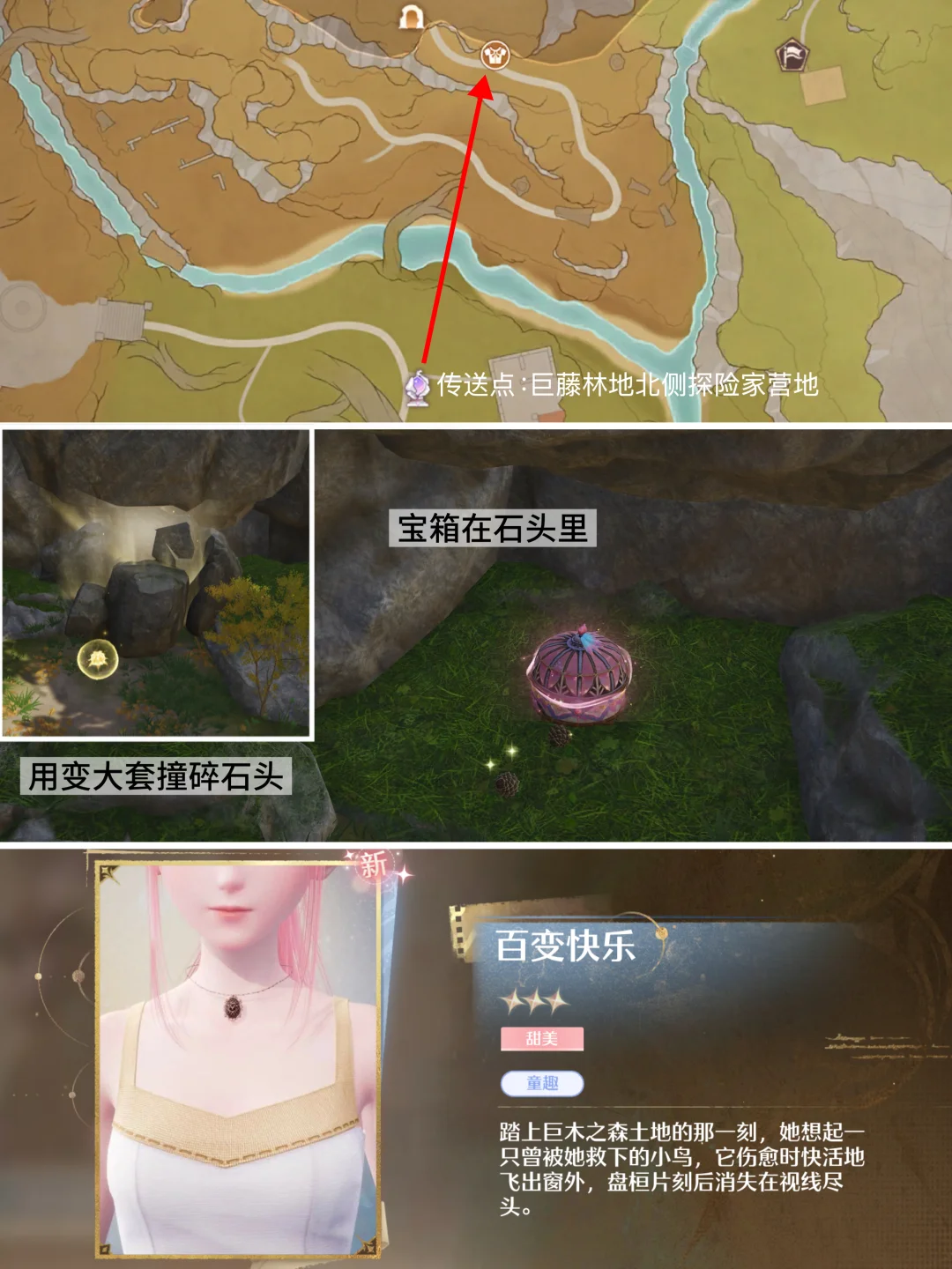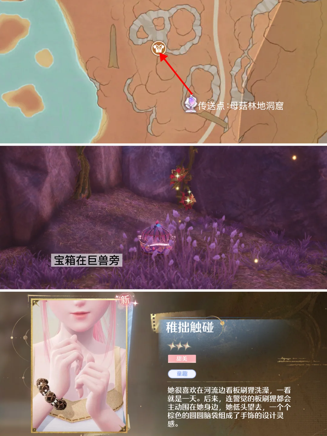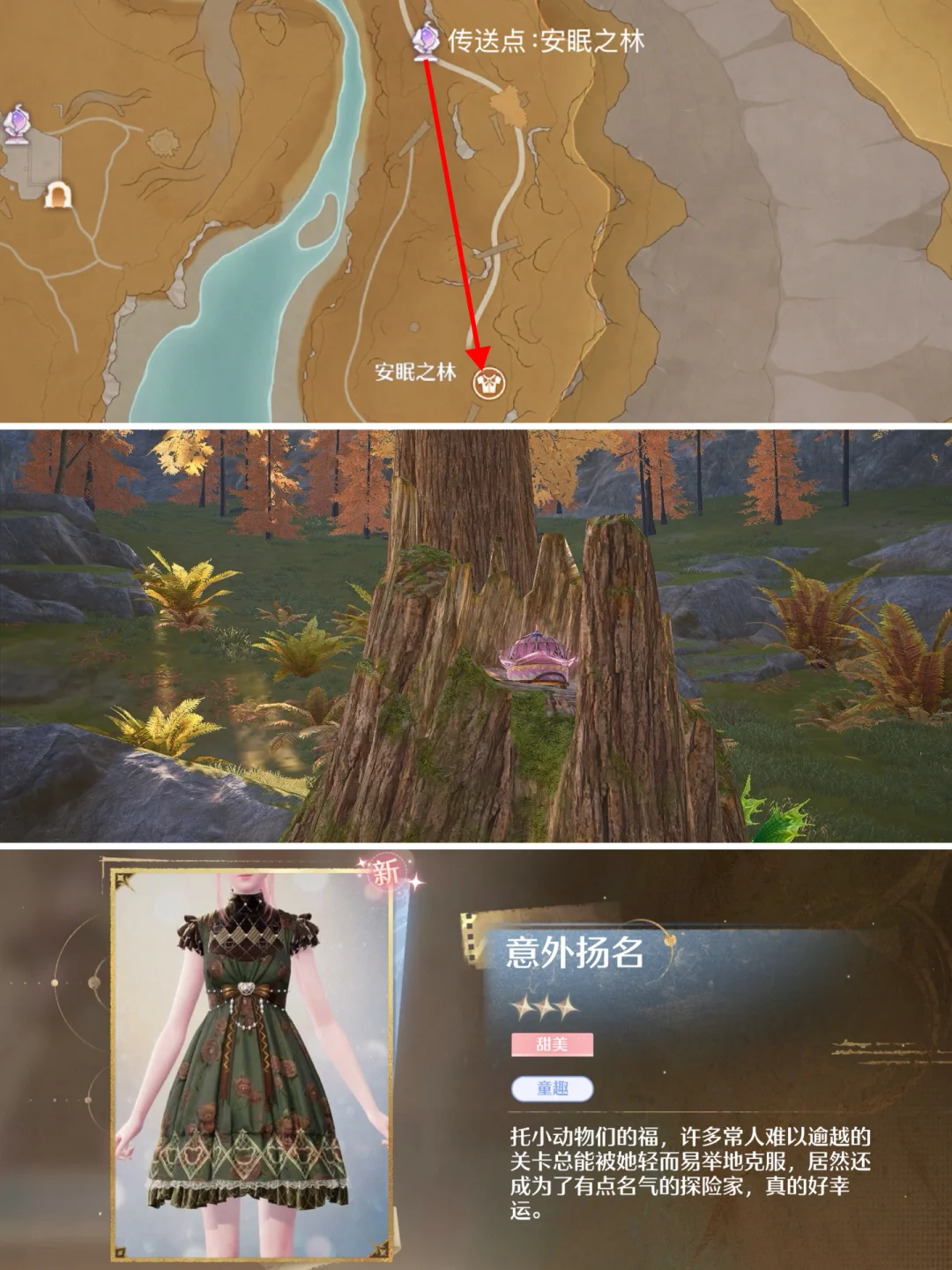 🌟三星套装:茸语喁喁 [打卡R]宝箱位置:巨木之森 🔘发型·通心大道 🔘连衣裙·意外扬名 🔘袜子·相伴日程 🔘鞋子·捍卫至灵 🔘发饰·傲娇之选 🔘颈饰·百变快乐 🔘腕饰·稚拙触碰 🔘背饰·暖忆微浮