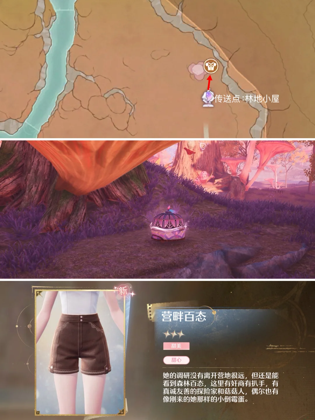伊赞之土服装宝箱 | 套装炽盛之心 🌟三星套装:未测调研 [打卡R]宝箱位置:巨木之森 🔘发型·风拂淡紫 🔘上衣·飞扬轻粉 🔘下装·营畔百态 🔘外套·别营星夜 🔘袜子·长纹学生袜 🔘鞋子·重启脚步 🔘帽子·晨间寻踪 🔘手套·吉菇相伴 🔘背饰·粉棕方包