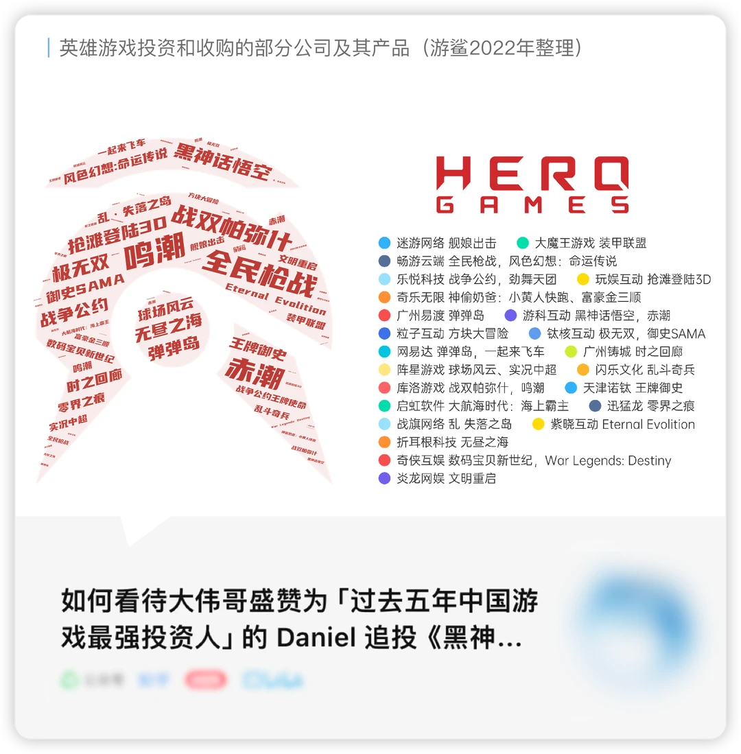 2015年英雄成立,火速引入红杉资本、真格基金、华兴资本,同年借壳塞尔瑟斯仪表登陆新三板,之后就开始买买买:全资收购畅游云端,卓越晨星,奇乐无限,网易达,参股了库洛、游科、钛核互动、奇侠互娱等等……不夸张的说,整个英雄游戏就是买出来的。