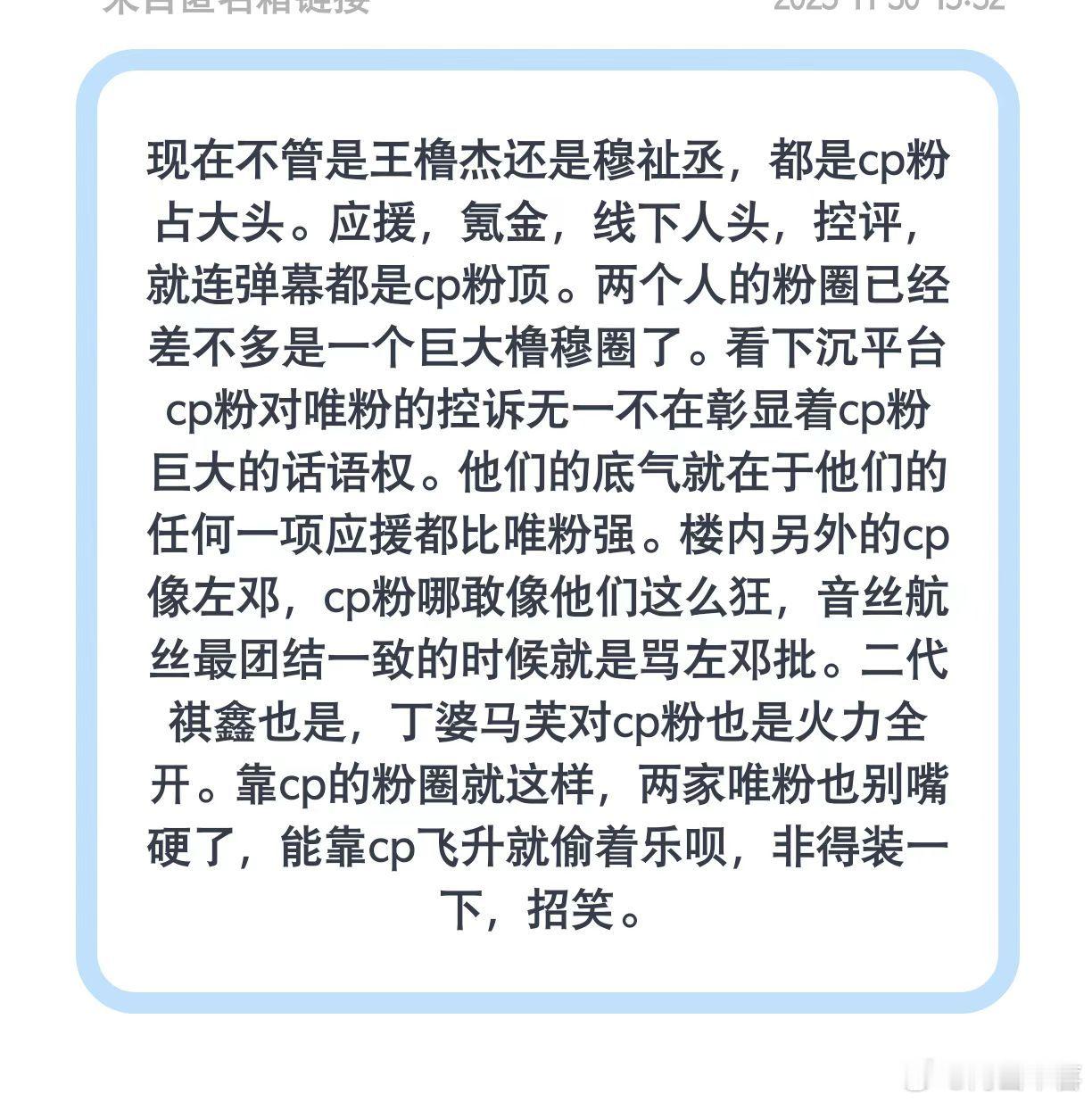 tg 现在不管是王橹杰还是穆祉丞,都是cp粉占大头。