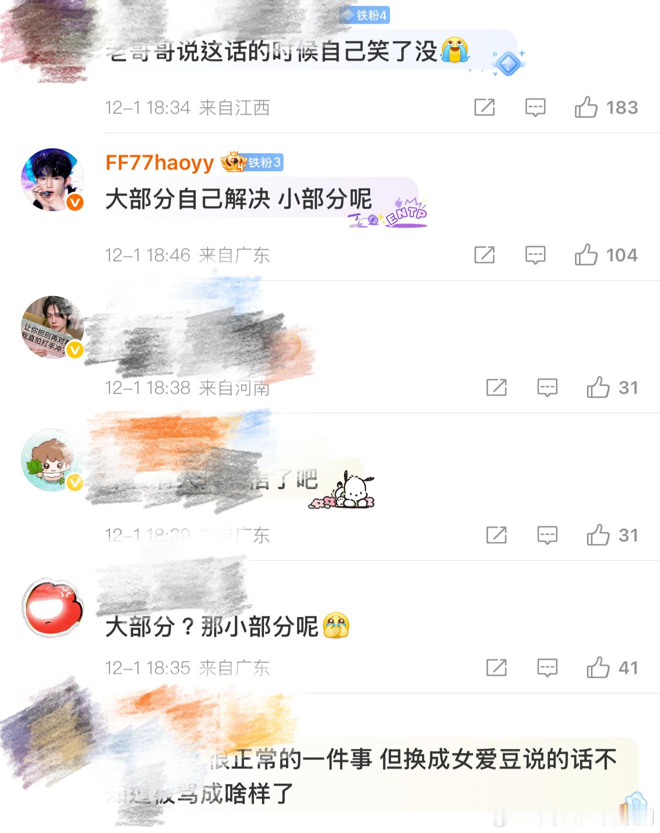 王嘉尔曝自己解决生理需求王嘉尔在节目中自曝自己大部分的生理需求都是自己解决的,有网友说那小部分的呢,哈哈哈哈哈,果然极度的坦诚就会无坚不摧