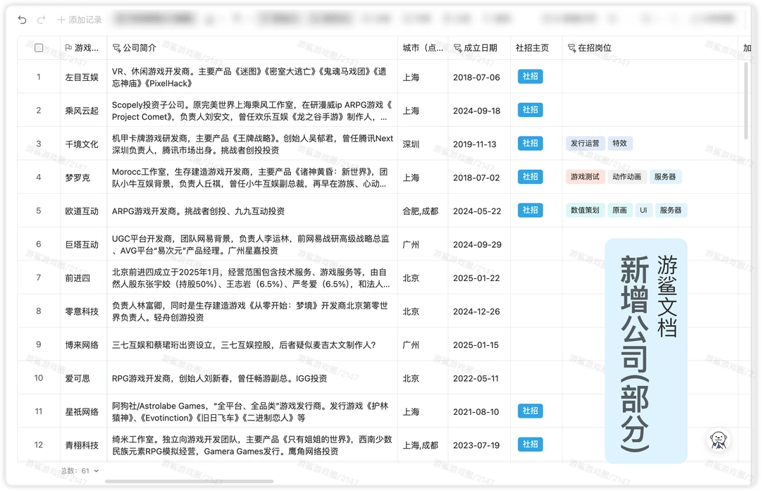 游鲨文档新收录70家公司【游鲨游戏圈】
