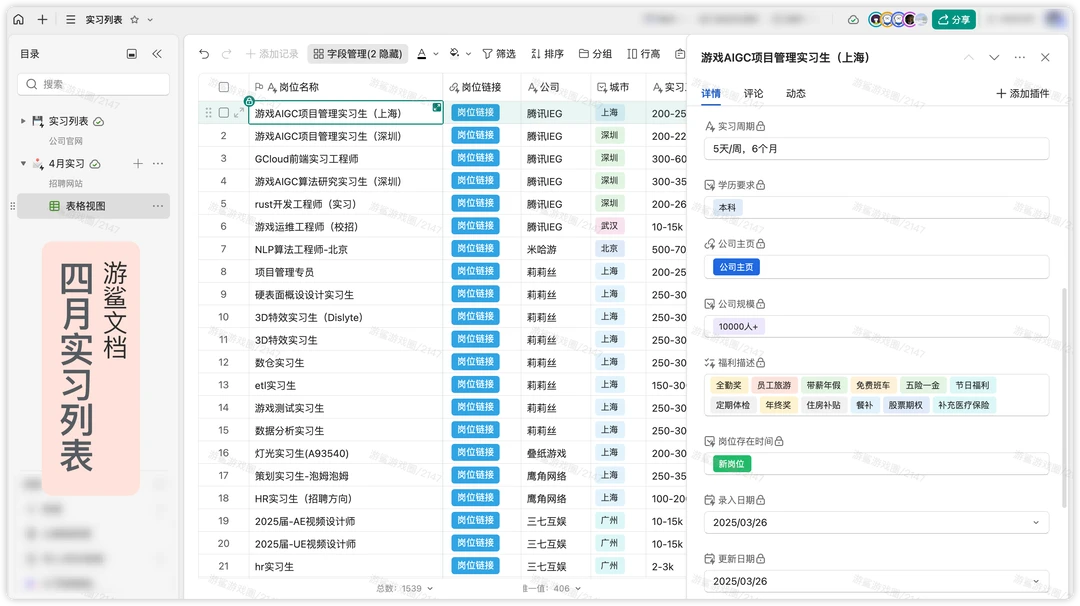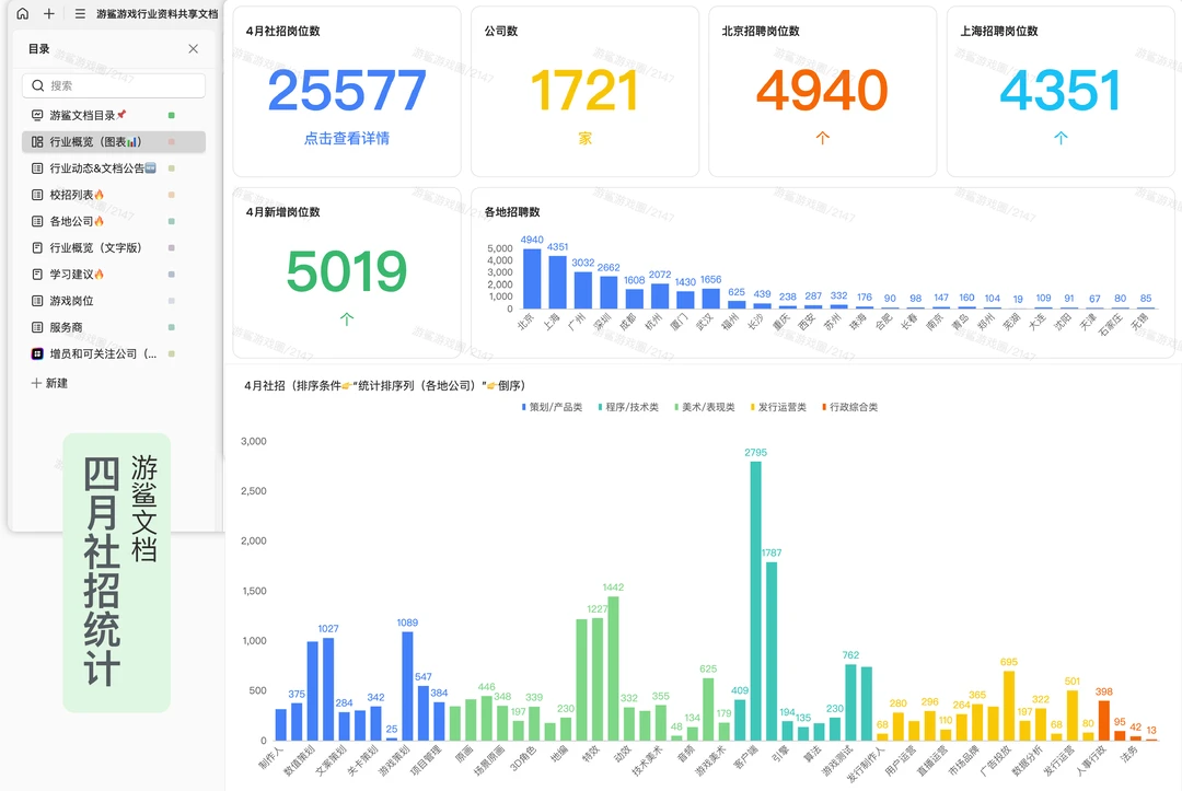1、新增60家公司、200+主体,包括左目互娱、乘风云起、嘉仕尔、前进四等; 2、更新4月社招数据,岗位总数25577个,招聘公司数1721家;新增岗位数5019个;北京招聘岗位数4940个,上海4351个。(查看路径👉行业概览(图表📊)👉下滑至4月社招区间); 3、更新实习列表; 4、新增「增员和可关注公司」应用。 [种草R]文档获取[向右R]笔记关联的群