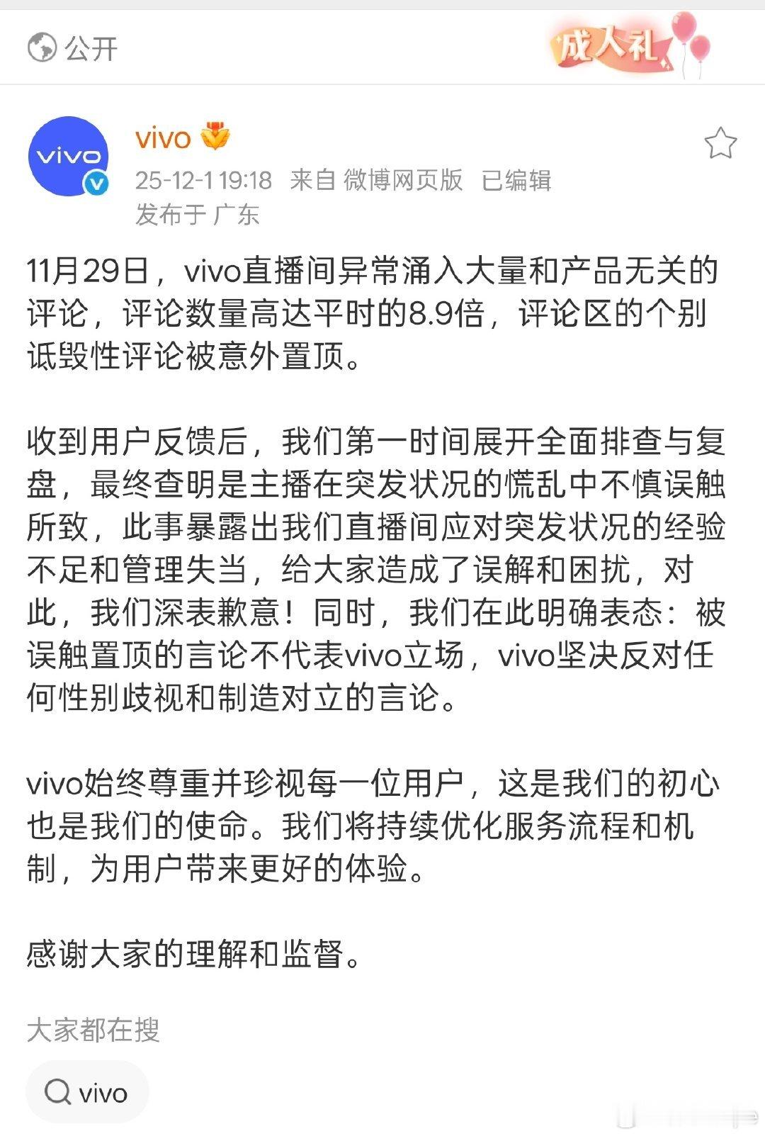 vivo回应直播间遭遇异常网暴诚恳回应厘清是非,闹剧背后节奏昭然真机用着舒心就好,市场自有判断,何必裹挟情绪扰了清净~
