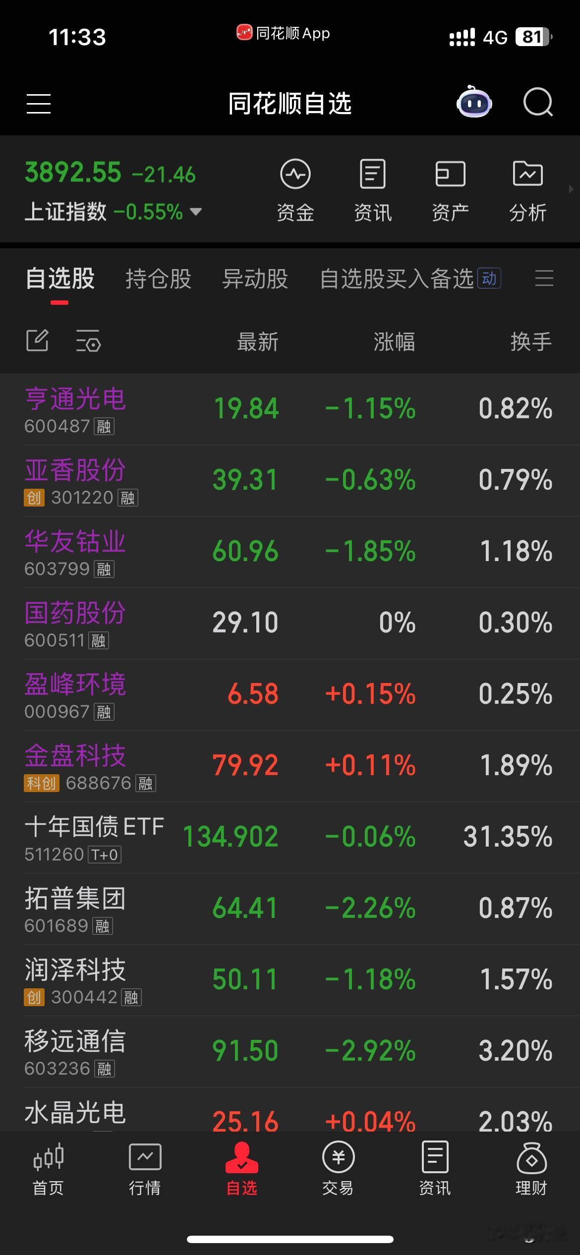 上午收盘了,一片萧条。大盘萎靡不振缩量明显,个股也是泥石俱下。下午不放量反弹可能无望。我上午没动。大部分持仓股都是走弱,亏700,本月前两天一红一绿。还有一点浮盈。只要来一次风浪就被吞没了[捂脸]。