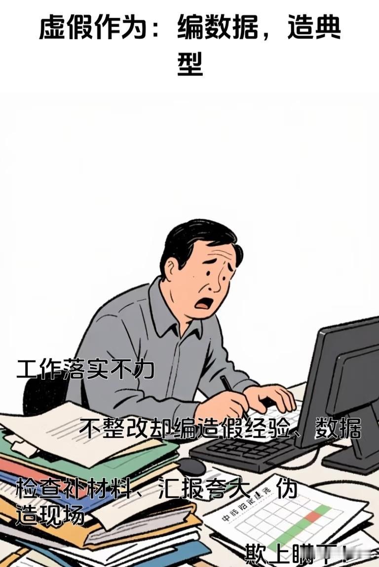 工作中形式主义的乱象:文山会海、表演式执行、口号式落实、流程内耗空转、层层甩责、太极式踢皮球、繁复无效考核、屎上雕花无用功、拍照打卡留痕迹、伪造数据欺上瞒下、假装忙碌无结果、好大喜功虚假繁荣……等等。 没有一家公司可以在形式主义中取得社会价值,从古至今也没有用形式主义获得成功的先例,因为结果不会跟你演戏说谎,最终胜利也不会弄虚作假,当你在表演喊口号假装繁荣,而你的对手在磨刀霍霍,形式主义就是你的墓字铭。