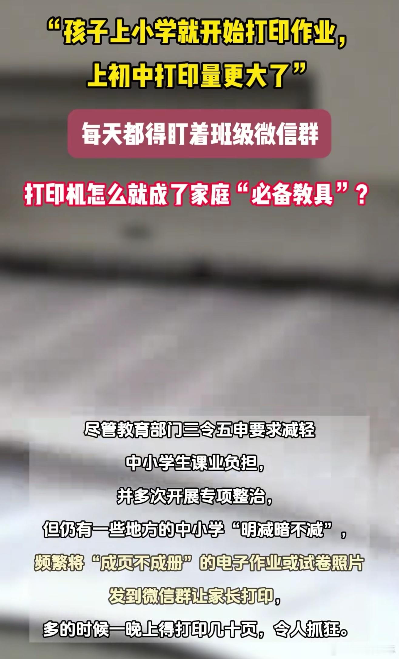 家长吐槽一上小学就要买打印机这个真的深有体会,每次帮妹妹打印试卷作业都一大堆,要经常盯着群里有什么要打印的东西没,一打印就是一大堆,时间久了,就想买一个打印机,不然每天都要抽时间出去打印