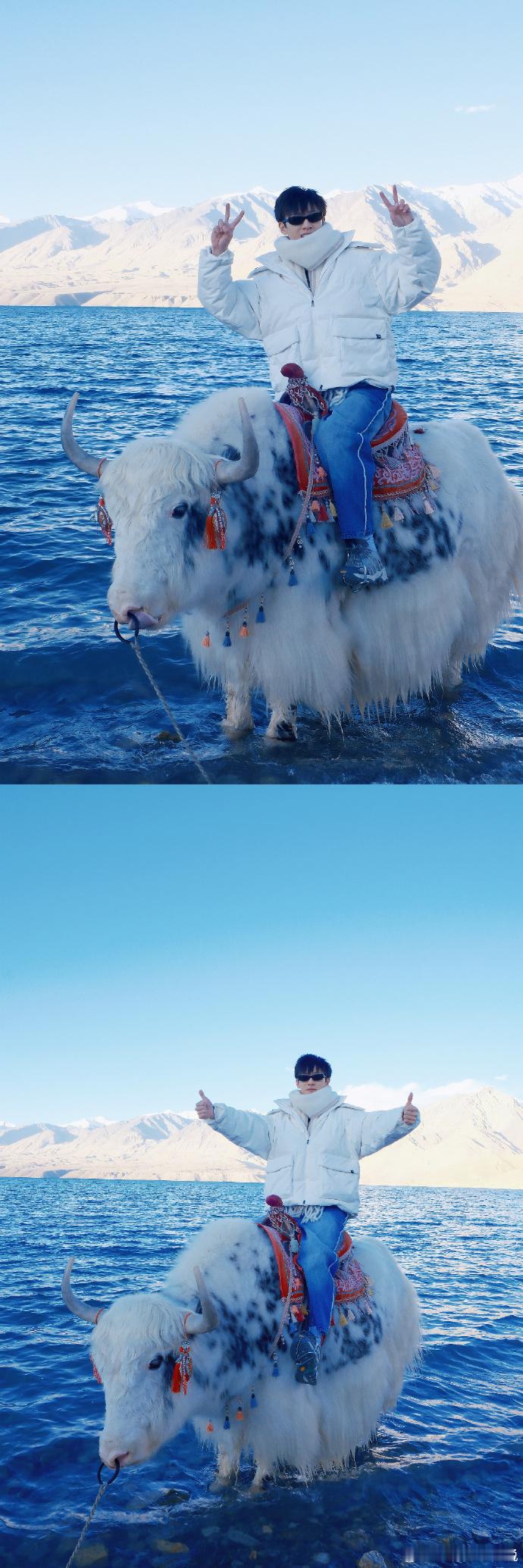 李昀锐骑牦牛比耶照 李昀锐骑牦牛比耶照📸看上去真的是又帅又觉得很可爱呀,在雪山之下的合影真的是觉得好有惊喜 李昀锐雪山下的合影