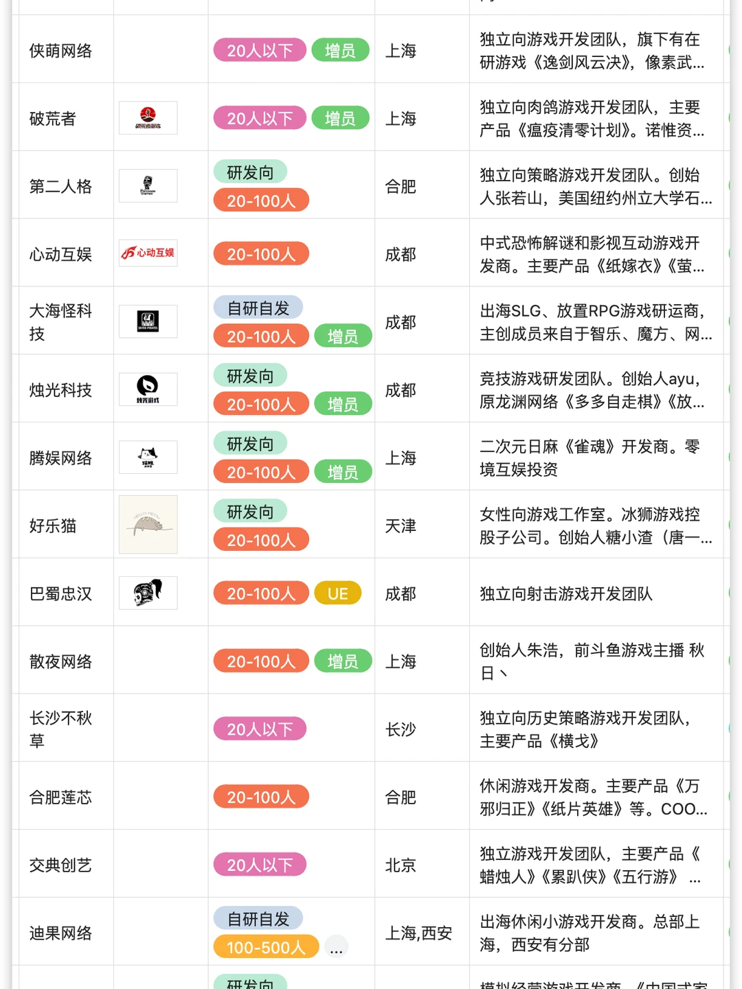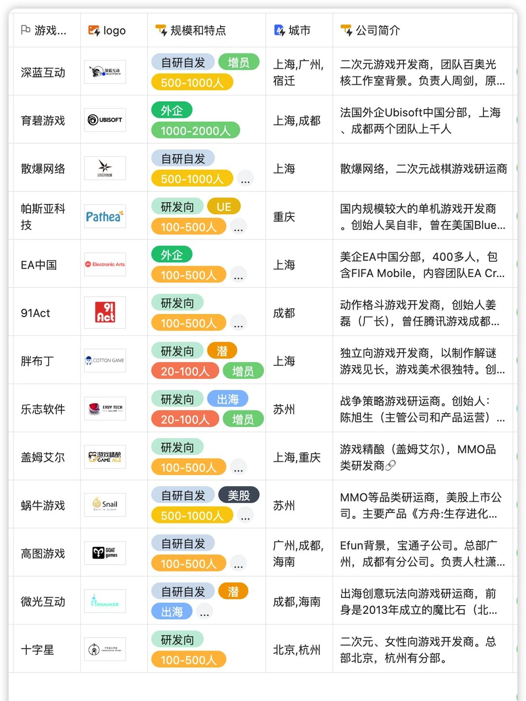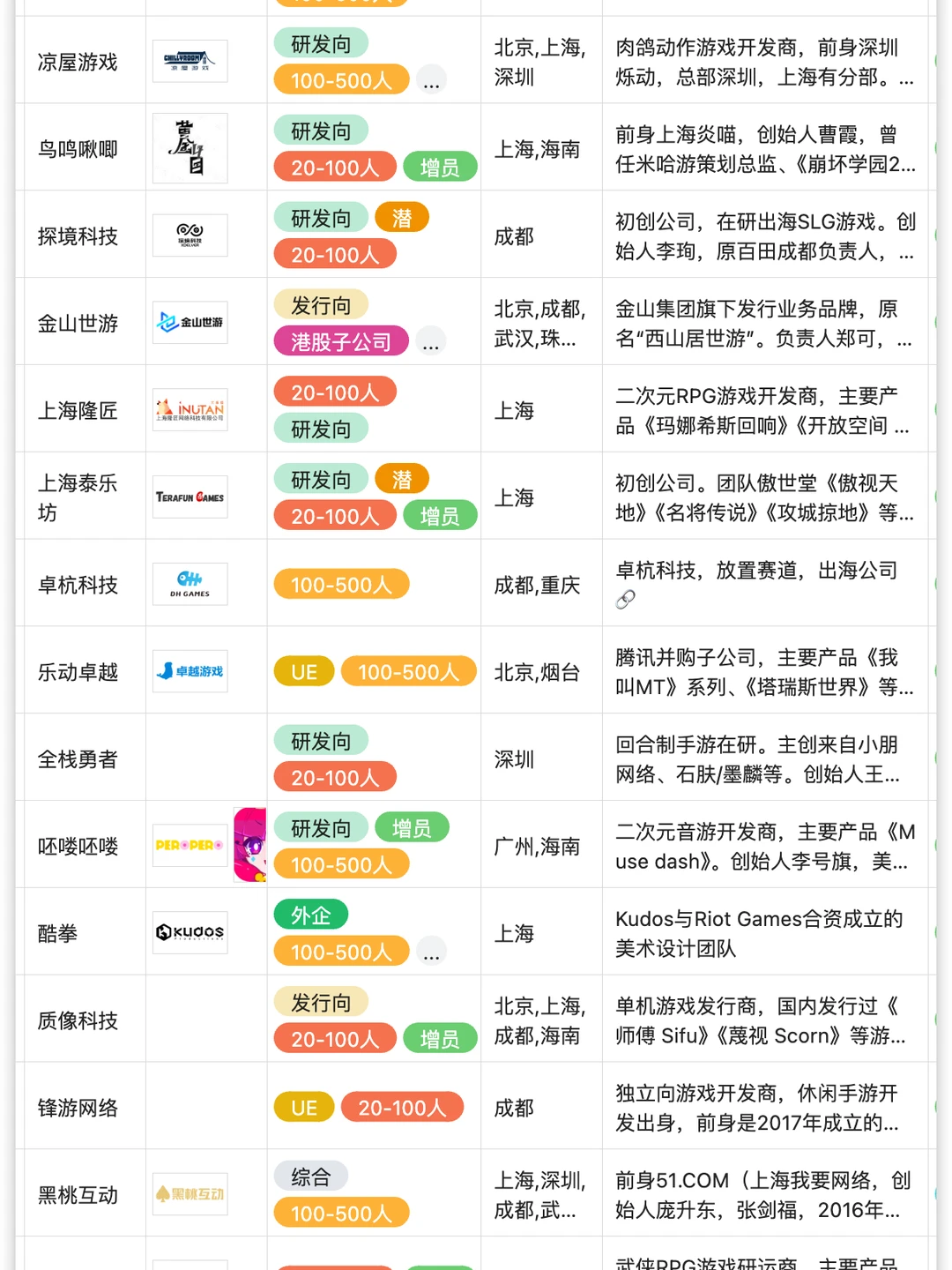 各地不加班公司统计(数据来自招聘平台公司主页,有些公司,尤其是独游、外企确实是不加班,有些应该是瞎标的,如有出入,欢迎评论区留言讨论~) [种草R]数据来源:游鲨游戏行业资料共享文档 [拔草R]获取方式:笔记关联的群