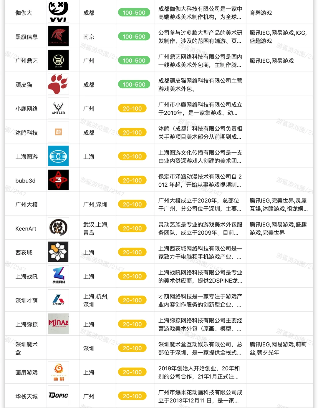 国内800+美术&动画供应商 [拔草R]公司列表见【游鲨游戏行业资料共享文档】 [种草R]获取方式:关联的群