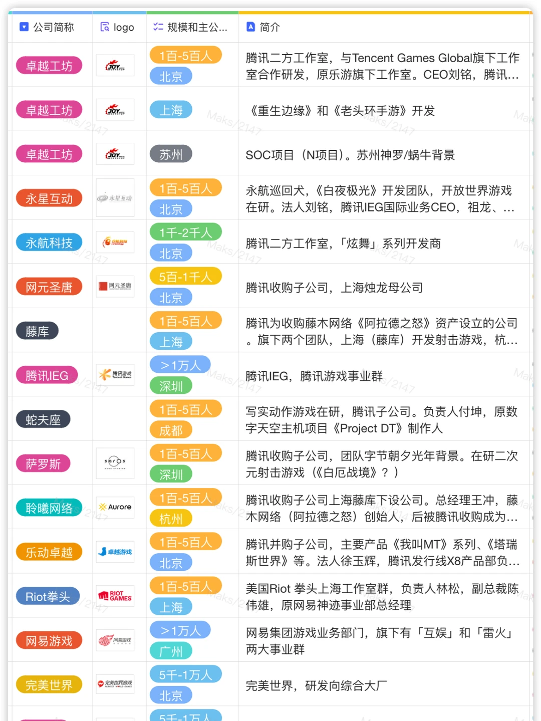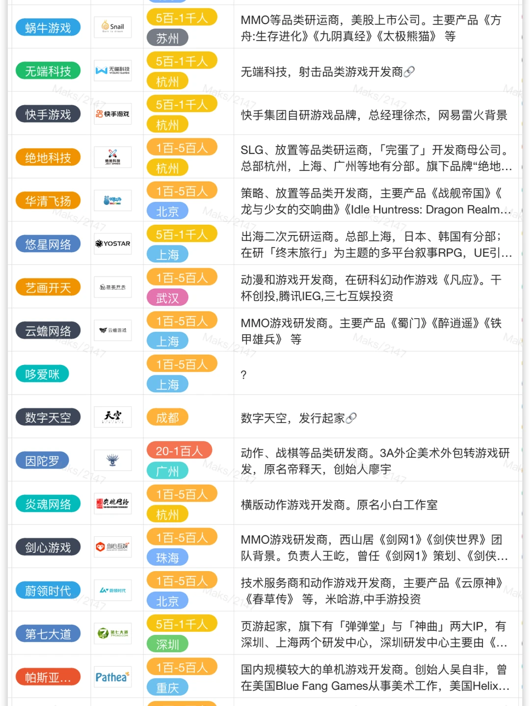 第一类是射击和开放世界等重度项目,以中大厂为主,如腾讯和腾讯系公司,以及网易、米哈游、完美、祖龙、叠纸等公司(的部分项目);