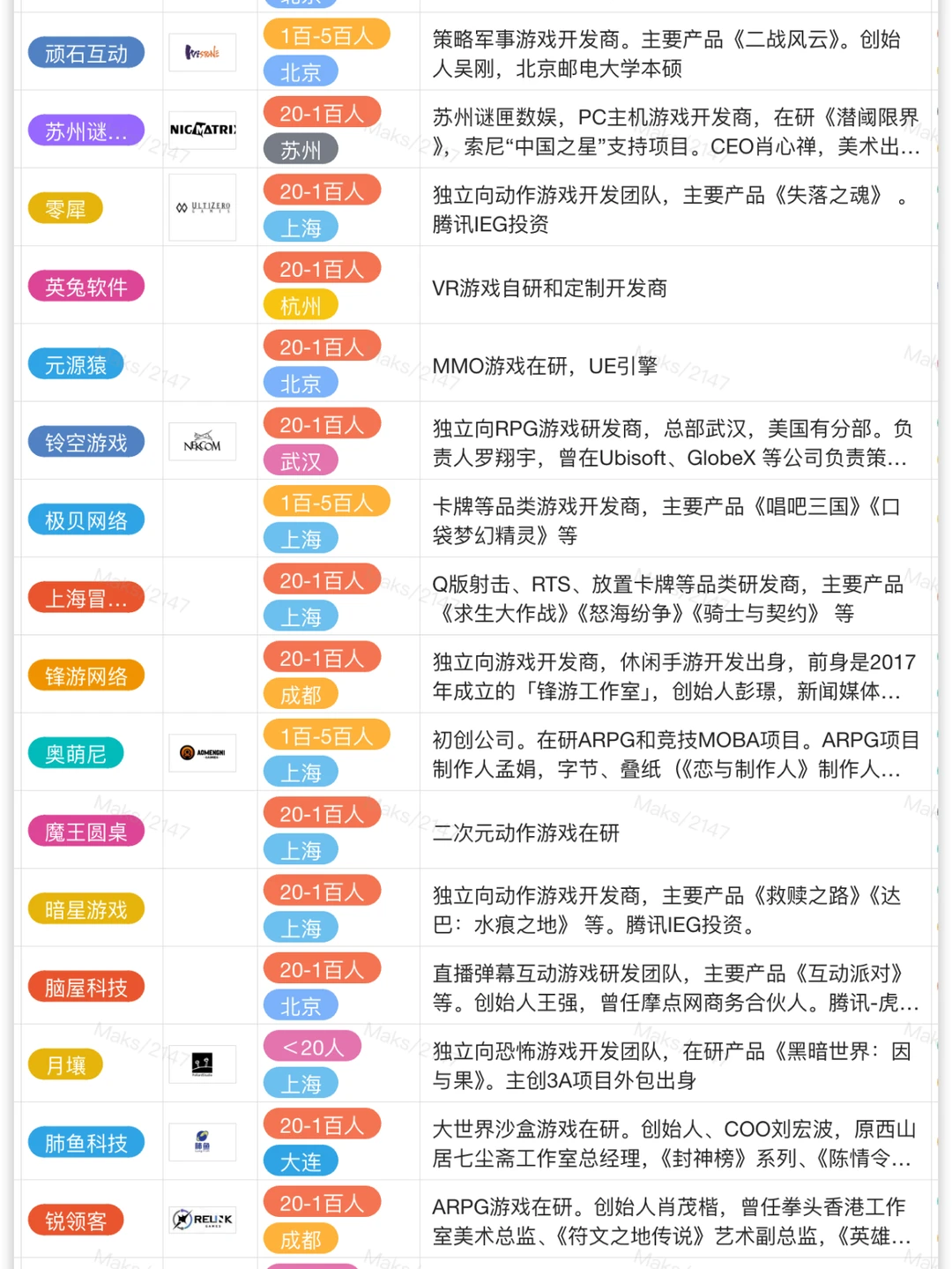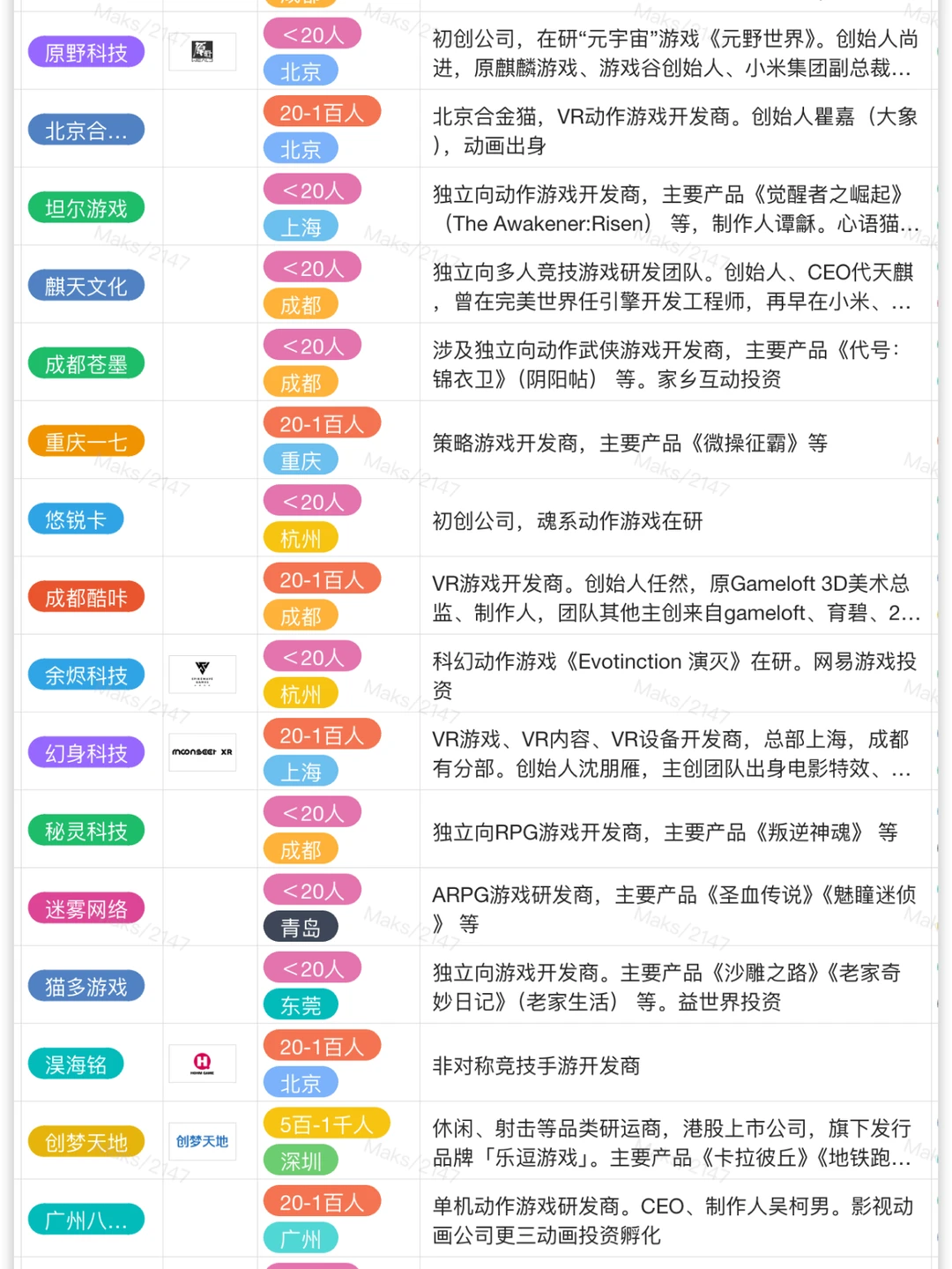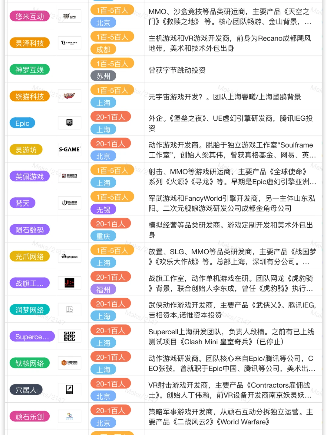 第二类是VR(含元宇宙)团队,如上海幻身、北京穴居人、杭州英兔等等。部分单机厂商也是VR起家,如上海钛核、武汉铃空等;