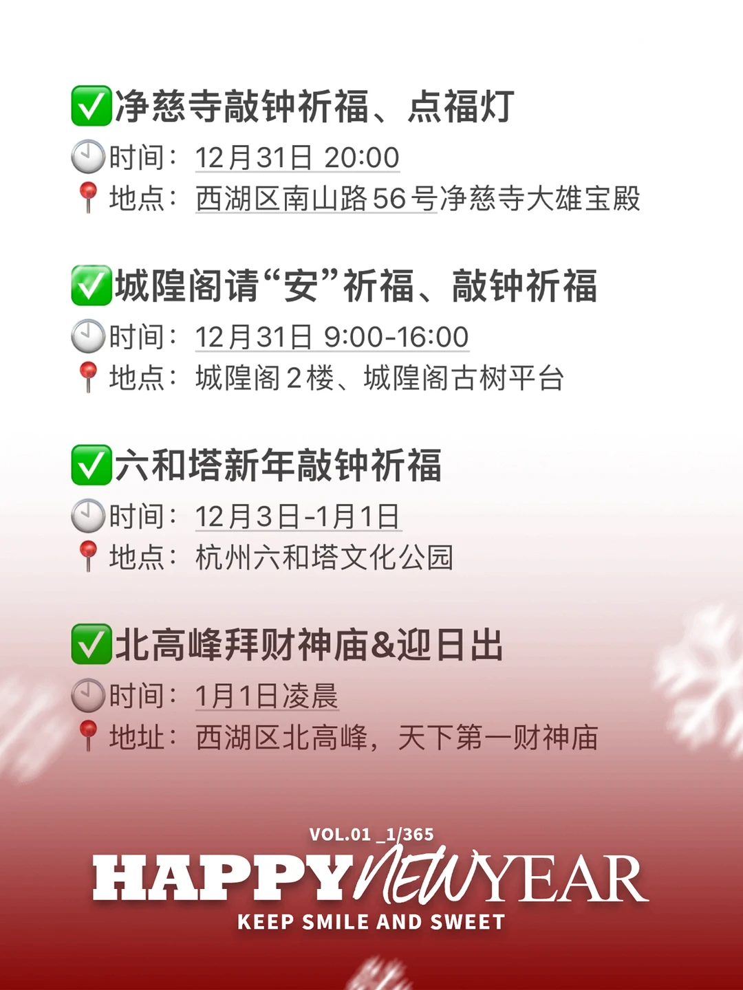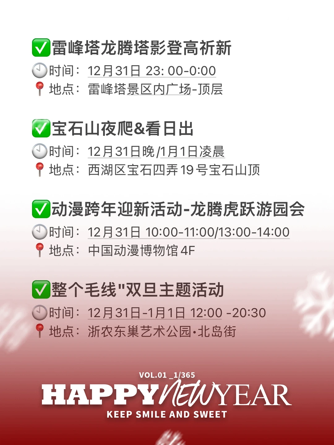 2024年杭州跨年倒计时啦!今年的你们打算去哪里跨年呢?在杭州和来杭州玩的宝子们,赶紧收藏下这篇超全跨年活动攻略吧![派对R]具体活动整理在图片了哦! 杭州今年跨年真的超多活动,快带上你心爱的ta一起去打卡吧!最后㊗️大家新年快乐,2024天天开心发大财吖!🥳🥳