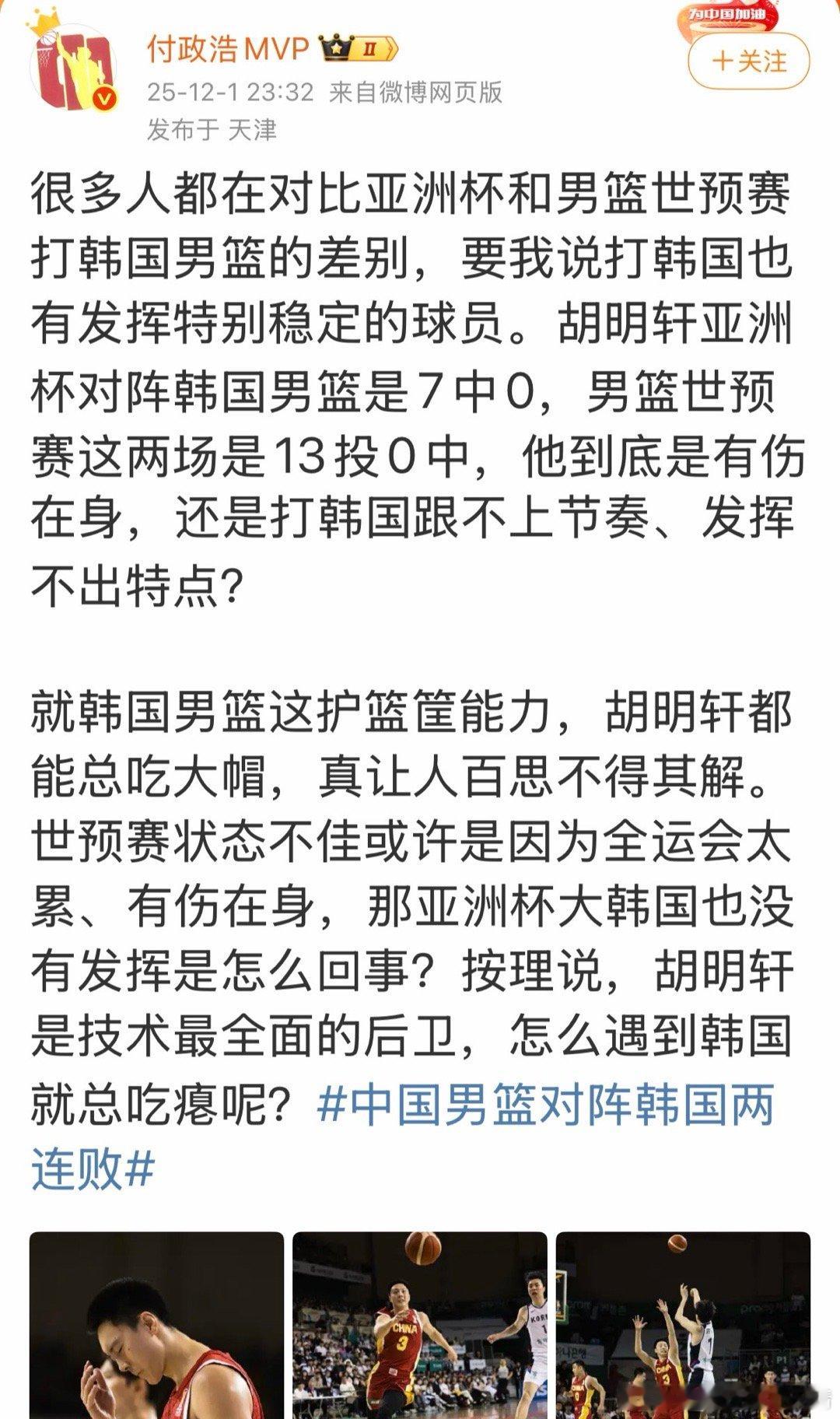 看看别人中国男篮 妈呀……付政浩开天眼了?他终于看出来胡明轩不能打国际大赛了?朋友们,付大记者都开喷了,我们客气什么呢!