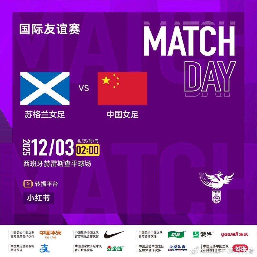 辽宁女足中国女足王爱芳 转战西班牙!友谊赛小红书直播。看看我们爱芳有进步没!爱芳加油!!!⚽ 苏格兰女足 VS 中国女足⏰ 北京时间2025年12月3日凌晨02:00🏟 西班牙赫雷斯查平球场