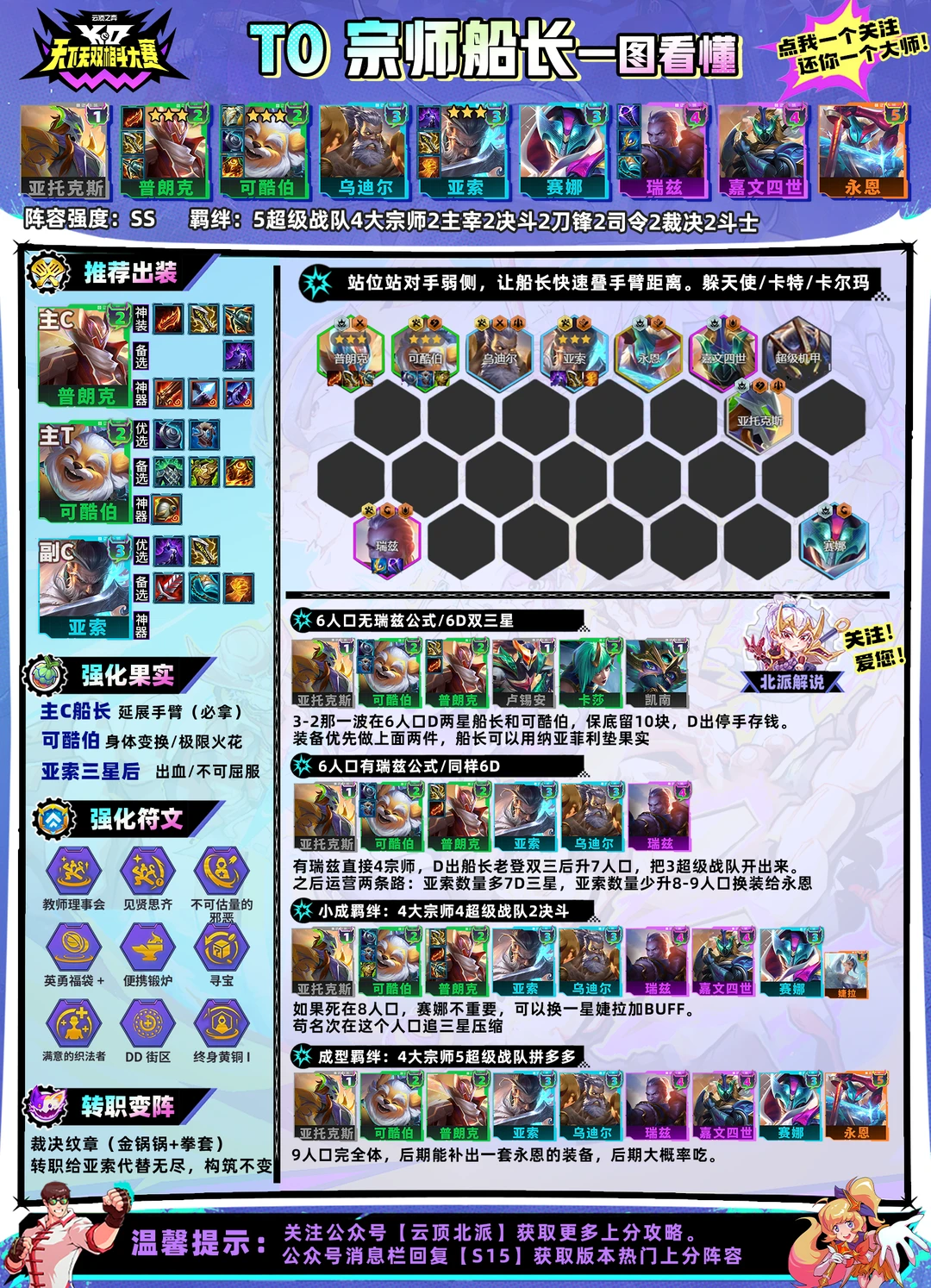 关注我的公众号【云顶北派】,第一时间学到最新上分阵容。
