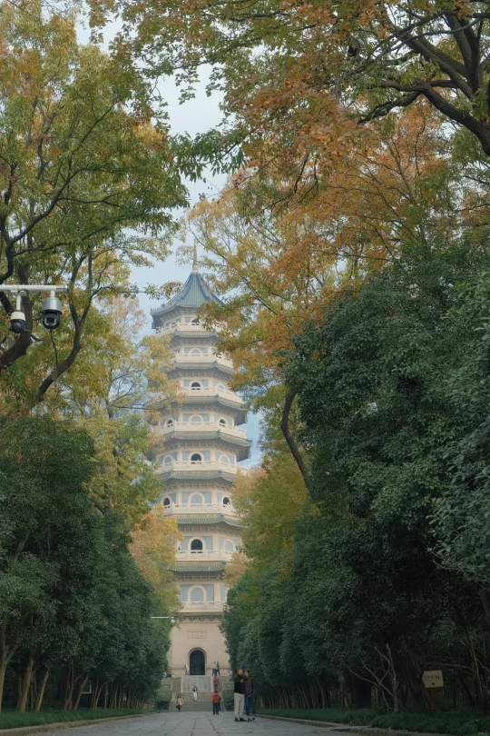 本地人第一次来灵谷寺, 一进门就被景区门口扫地的大爷安利了九层塔上的最美秋景视角——可以俯视整座紫金山,全南京独一份儿~ 大爷还说“来都来了,早半小时到能省门票钱”,亲测靠谱[赞R]这篇把省心攻略分享给大家: ✅参观信息 ▪️开放时间:6:30-18:30(2-11月),7:00-17:30(12月-1月);6:30前免门票 ▪️门票:35r(儿童半价;1.4m以下免费) ▪️交通:灵谷寺门前就是网红梧桐大道,7:00~19:00单向通行,不建议自驾!我们是打车来回:去程定位 “灵谷寺南门”,返程定位 “体育学院西门”(穿过梧桐大道,左手边就是,很好找);也可乘坐🚇地铁2号线“钟灵街站”1号口下车,步行稍远但沿途有秋景~ ▪️研学科普:带娃赏秋,可戳左下角,带上我编写的《紫金山植物手册》,边逛边解锁植物知识,让你们的秋游更有意义~ ✅参观路线(3~4h) ➡️南门:进门前,可先逛逛南门口的西北水库,我们是7点到的,此时晨光熹微,水鸟翩跹,图2就是在这儿拍的,氛围感绝了! ➡️万工池:明初朱元璋让万名军工一天挖成的 ➡️红山门:门额“灵谷胜境”是书法家钱松喦所写,两侧石狮是北平军分会所送 ➡️“大仁大义”牌坊:四柱三间造型,guo民dang元老yu右任题写 ➡️无梁殿:景区最老建筑,始建于明洪武年间,全砖拱结构(无一根木头),里面是阵亡将士名录与《总理遗嘱》 ➡️金陵桂花王:100+岁,南京现存最老的桂花王 💗环形路口绕一圈后,沿右手边灵谷寺方向前行 ➡️“钟山神木”古银杏:600+岁 ➡️灵谷寺:曾经的明代“天下第一禅林”,里面供奉着玄奘大师顶骨舍利 ➡️谭延闿墓:著名建筑师刘敦桢设计 ➡️邓演达墓:墓碑由何香凝题写 💗自此原路返回,继续打卡剩余地标 ➡️松风阁:最早是明代的僧人禅堂,现存建筑为美国建筑师墨菲(也称 “茂非”)设计 ➡️灵谷塔:九层八面,252级台阶,登顶能360°俯瞰紫金山,真的超美!远处美龄宫、中山陵清晰可见,塔内还有孙中山先生碑文 ➡️桂林石屋:由桂林奇石砌筑,现仅存残垣断壁 ➡️宝公塔&志公殿:南朝梁为纪念高僧宝志禅师而修建,现仅存遗址,这里有个未解之谜“飞来剪” ➡️第三公墓遗址:戴li墓在这里的环形小道上(池塘对面)