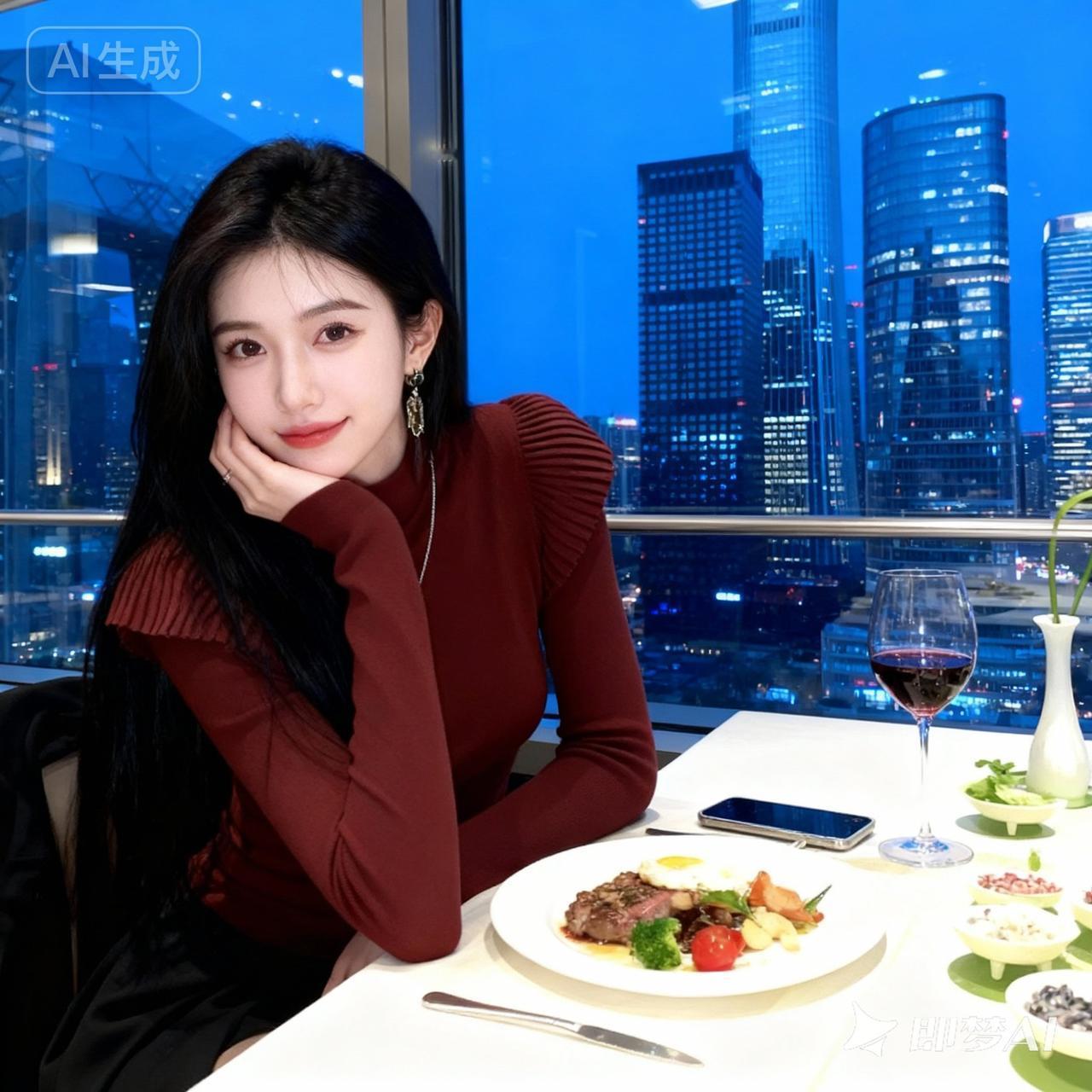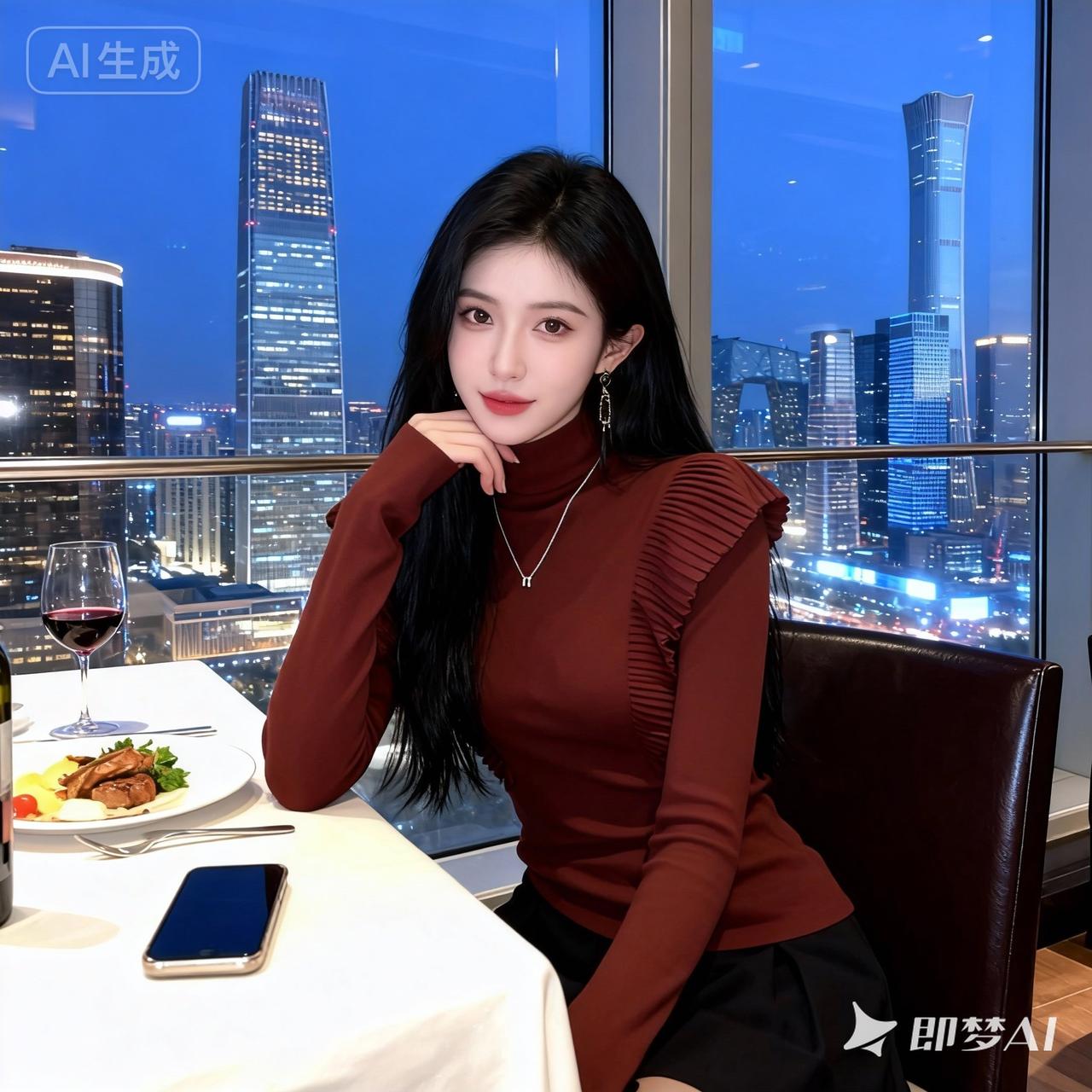 现代美女,容貌俱佳,尤其是侧面形象更好,长发,诱人的眼神,红红的嘴唇,穿露一个肩