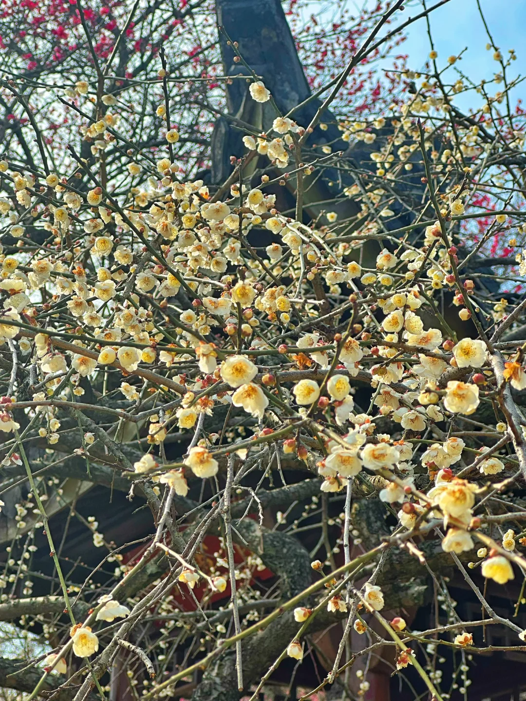 1⃣️品梅苑:西北门入口处,有很多种不同颜色的🌺梅花,红梅、白梅、黄梅等竞相开放;