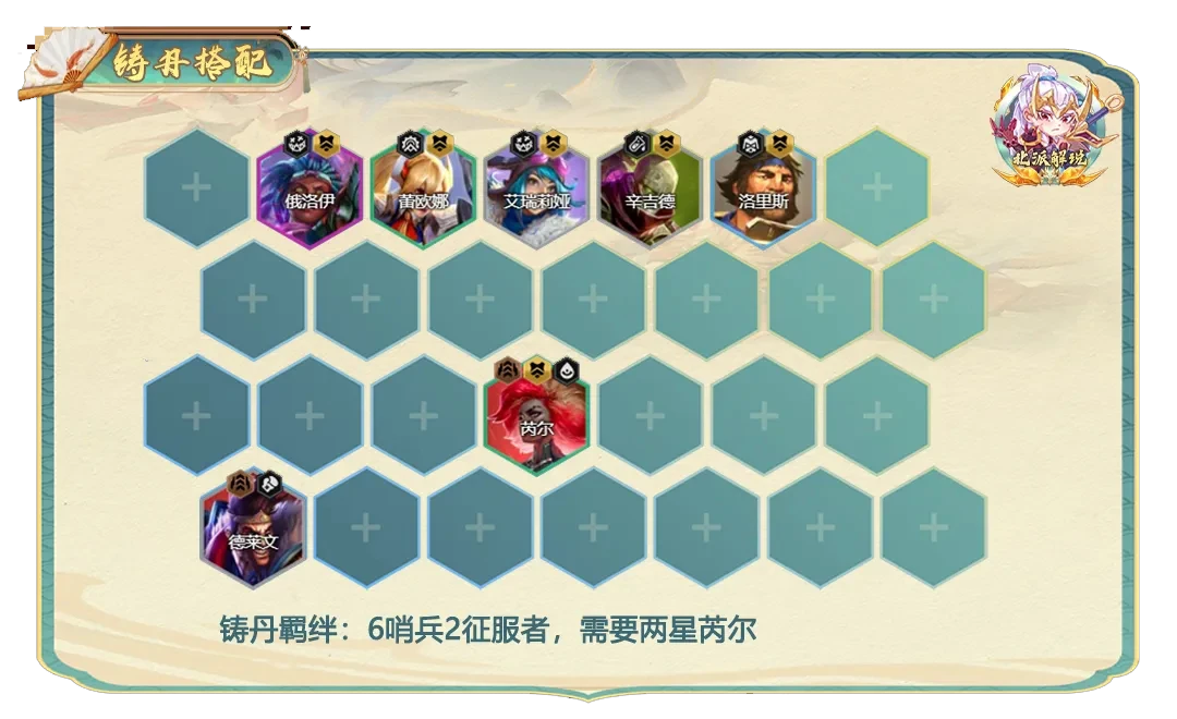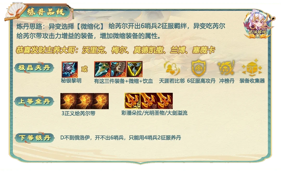 第一步留哨兵牌,炼丹需要用6哨兵2征服者的芮尔祭献。