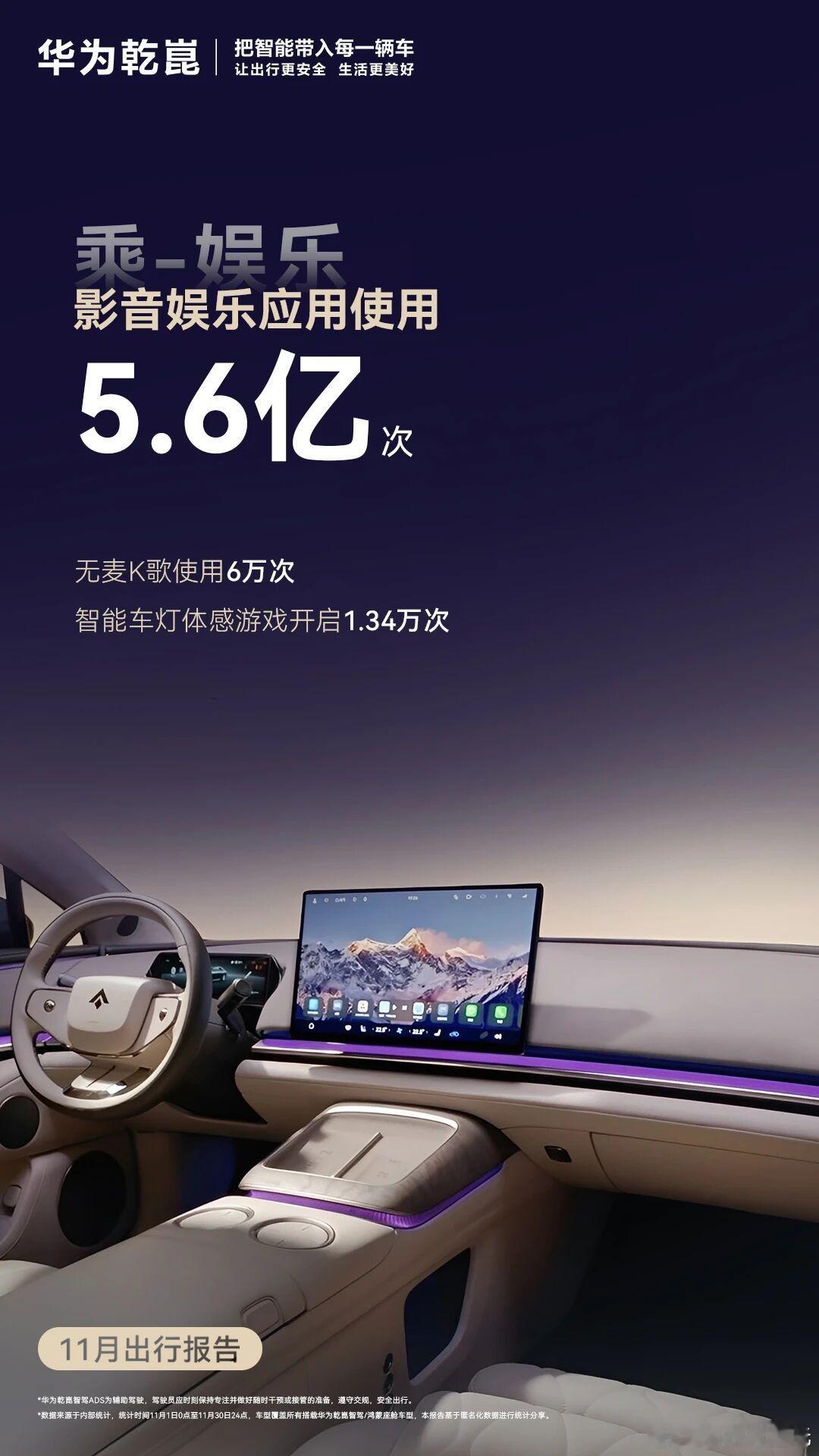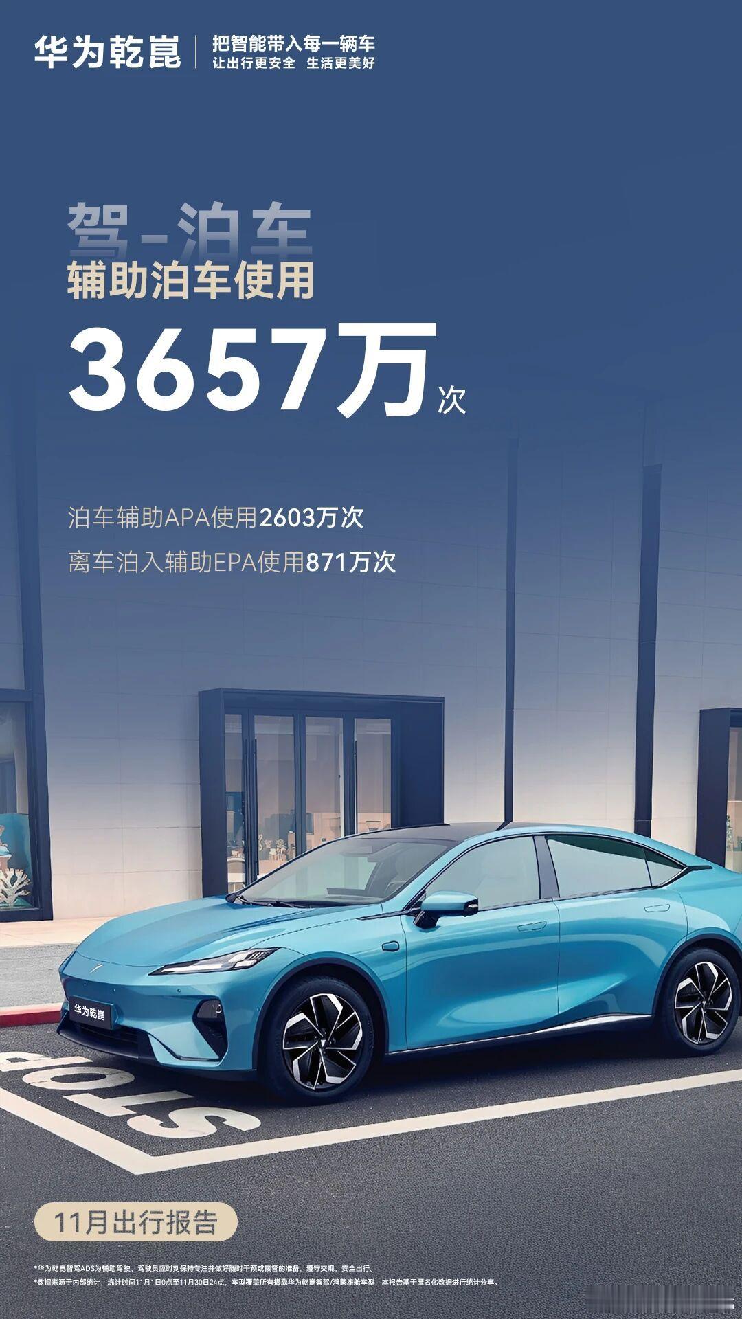 11月华为乾崑智驾出行报告出来了!车位到车位2.0功能单月使用了509万次我是没想到的,要知道年初这数才30万次,暴增16倍的背后,说明了华为乾崑智驾已经完成从能用到好用的质变突破。尤其是这次报告我关注到了三个关键点:一是用户粘性,辅助驾驶活跃用户占比94.4%,印证用上就离不开的真实体验;二是安全价值,累计避免可能的碰撞318万次,第二年保费下降35%的案例证明安全才是最大省钱;三是技术平权,15家车企合作、35款车型,覆盖15万至百万级市场,让辅助驾驶不再是豪车专属。从ADS 2到ADS 4的10多次OTA升级,更揭示乾崑智驾常用常新的承诺不是空话。当别家还在画饼时,乾崑智驾已用63.8亿公里真实里程筑起了真正的技术护城河!买车就买乾崑智驾华为乾崑智驾数据月报