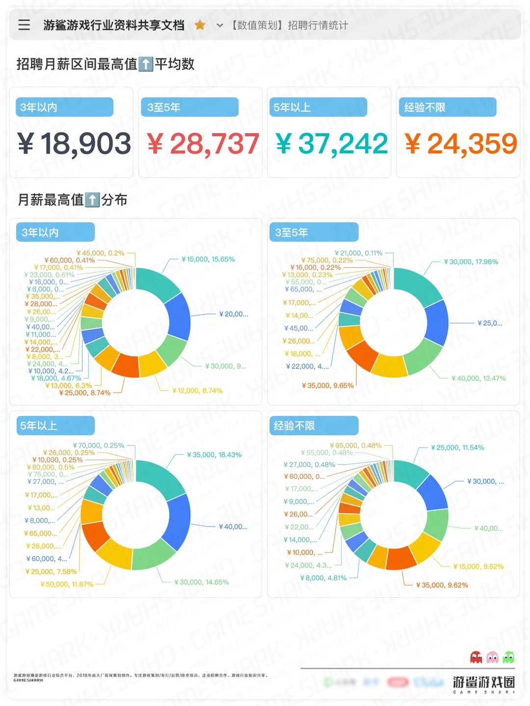 3、「年薪区间最高值」举例:18-25K,16薪,则最高值=25K×16=400000(元),未考虑项目奖/签字费/股票等;未标注几薪的数据,按照12薪计算年薪;