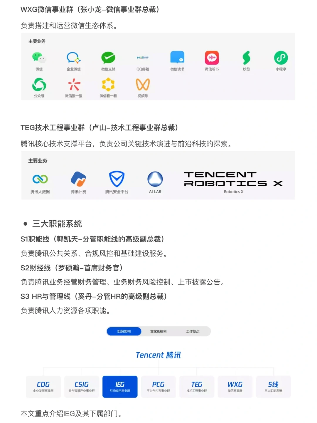2、四大工作室群除了各个研发工作室,还各自设有技术中心、美术中心、IP中心、市场中心等支持部门。对于腾讯游戏整体来说,这是重复造轮子,但对于各个工作室群,各种资源完全由自己掌控,不比跨部门调动来的愉快;