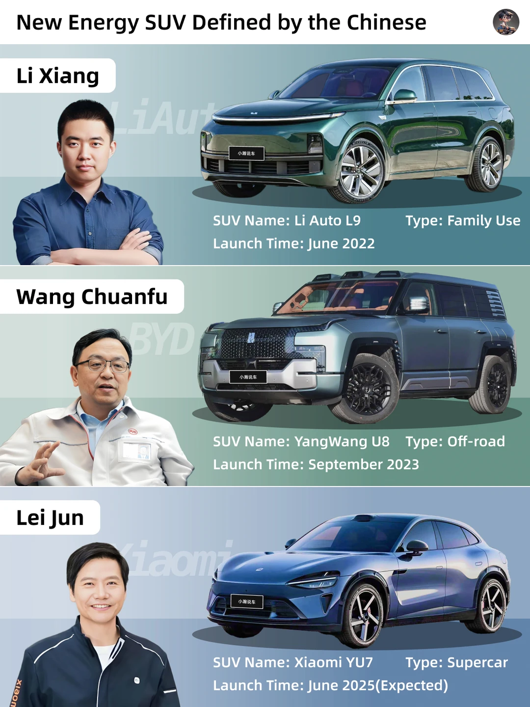 chinesecar SUV newenergy Chinesefamily LiAuto BYD xiaomi Which is most impressive SUV? [投票]