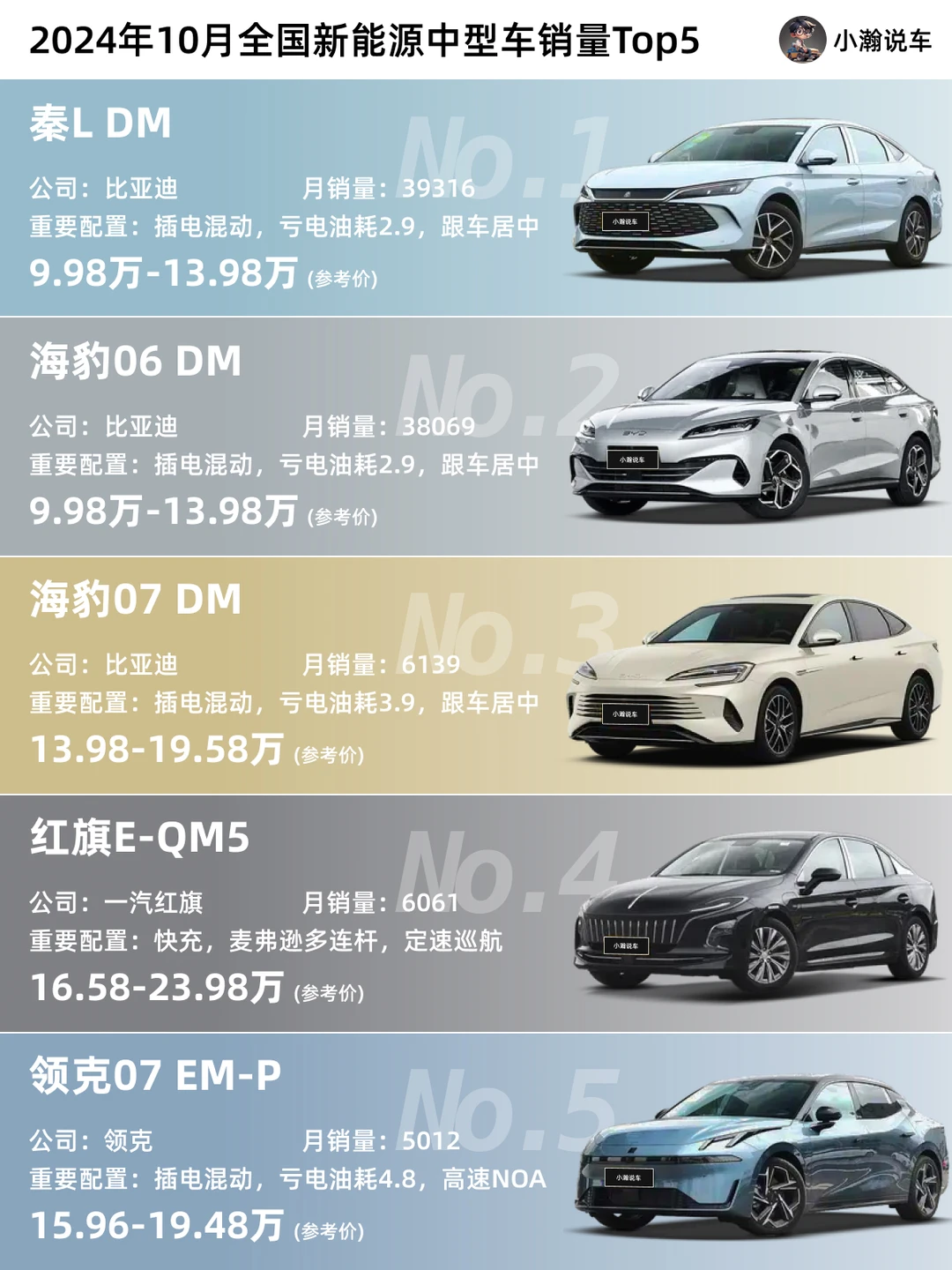 [红色心形R]中型车:“工业奇迹”998稳居前2,海豹07dmi也升至第三,model3销量跌出了前6