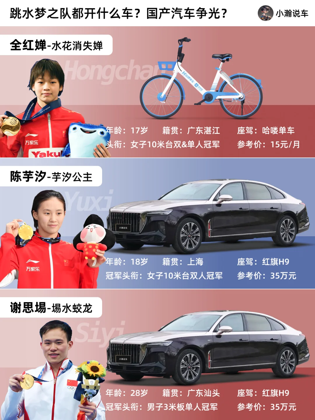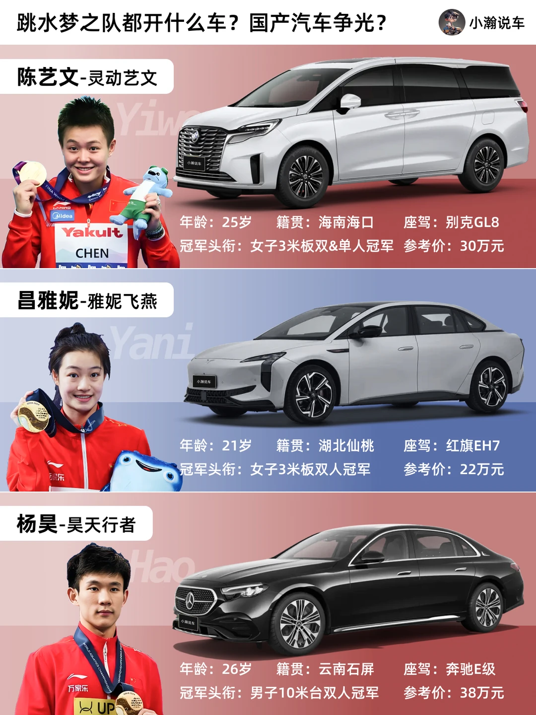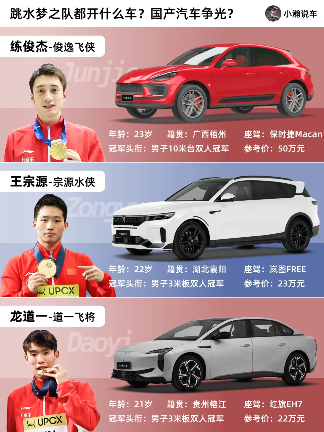 巴黎奥运会上,中国军团除了乒乓球外让人放心的当属跳水项目。目前“跳水梦之队”已经包揽了8枚🏅中的7枚,而今晚的男子十米跳台决赛,杨昊和曹缘也会携手向着第8枚🏅发起冲击。 那么在水上这么强大的“跳水梦之队”,在陆地上都开什么车?来看看谁的座驾出乎你的意料。