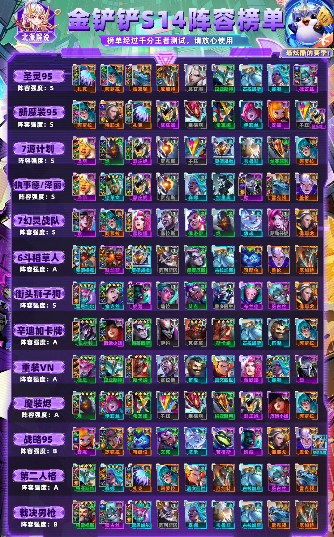 云顶之弈S14全阵容榜单