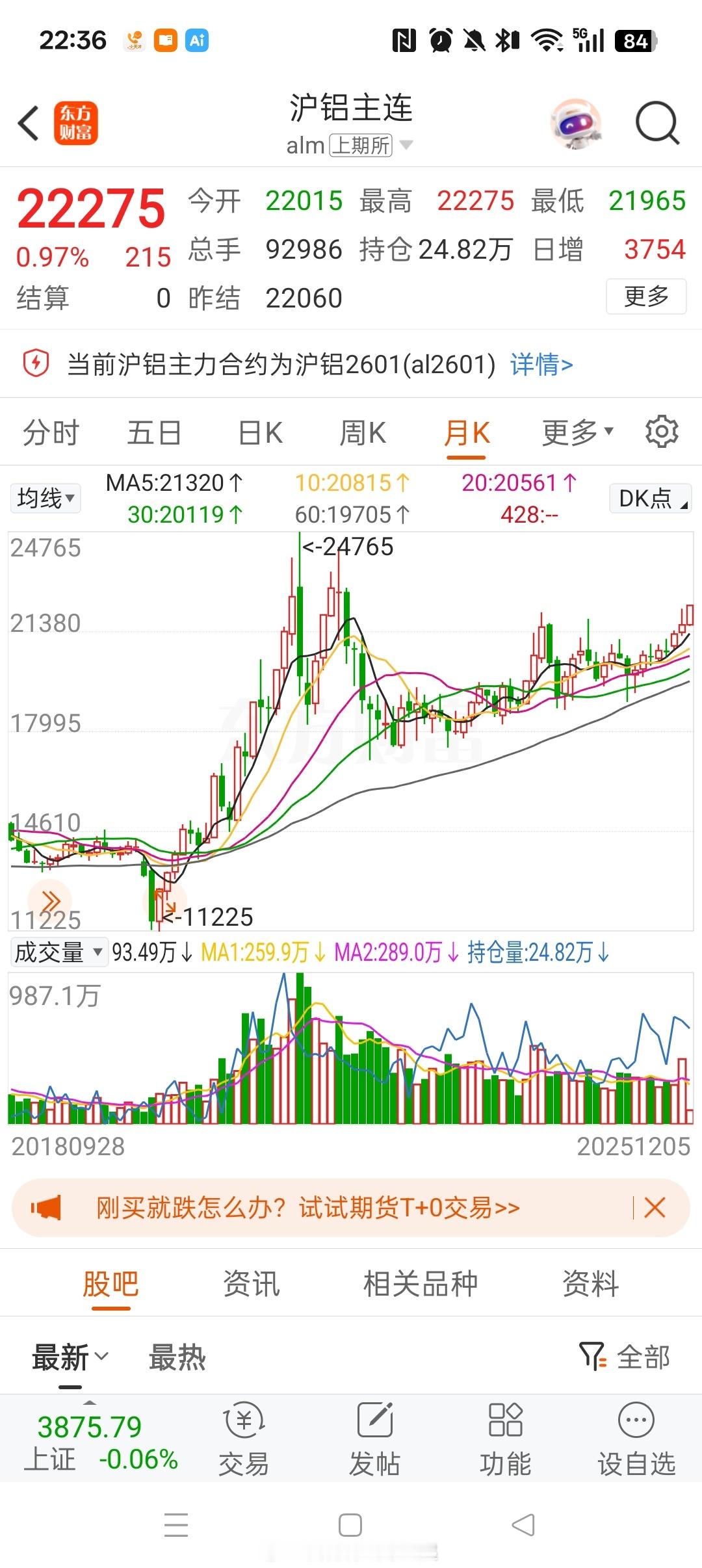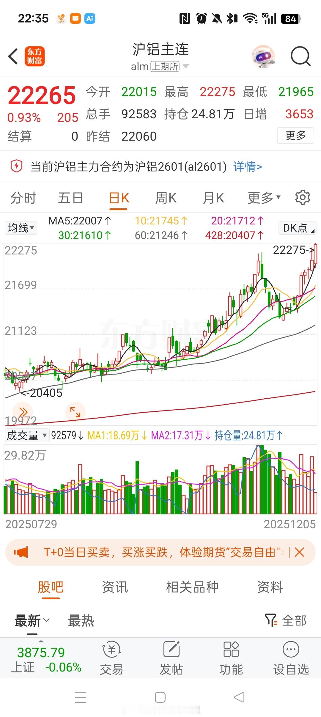 沪铝再创新高,今天好多大聪明都“高位”减仓电解铝 股了,确实,云铝新高回落,小电解铝临近新高疲软,其他股都很弱,总担心这担心那。日线看沪铝涨了不少,周线看刚刚主升才起势,月线看呢?刚刚冒头。大聪明明天估计要追了。