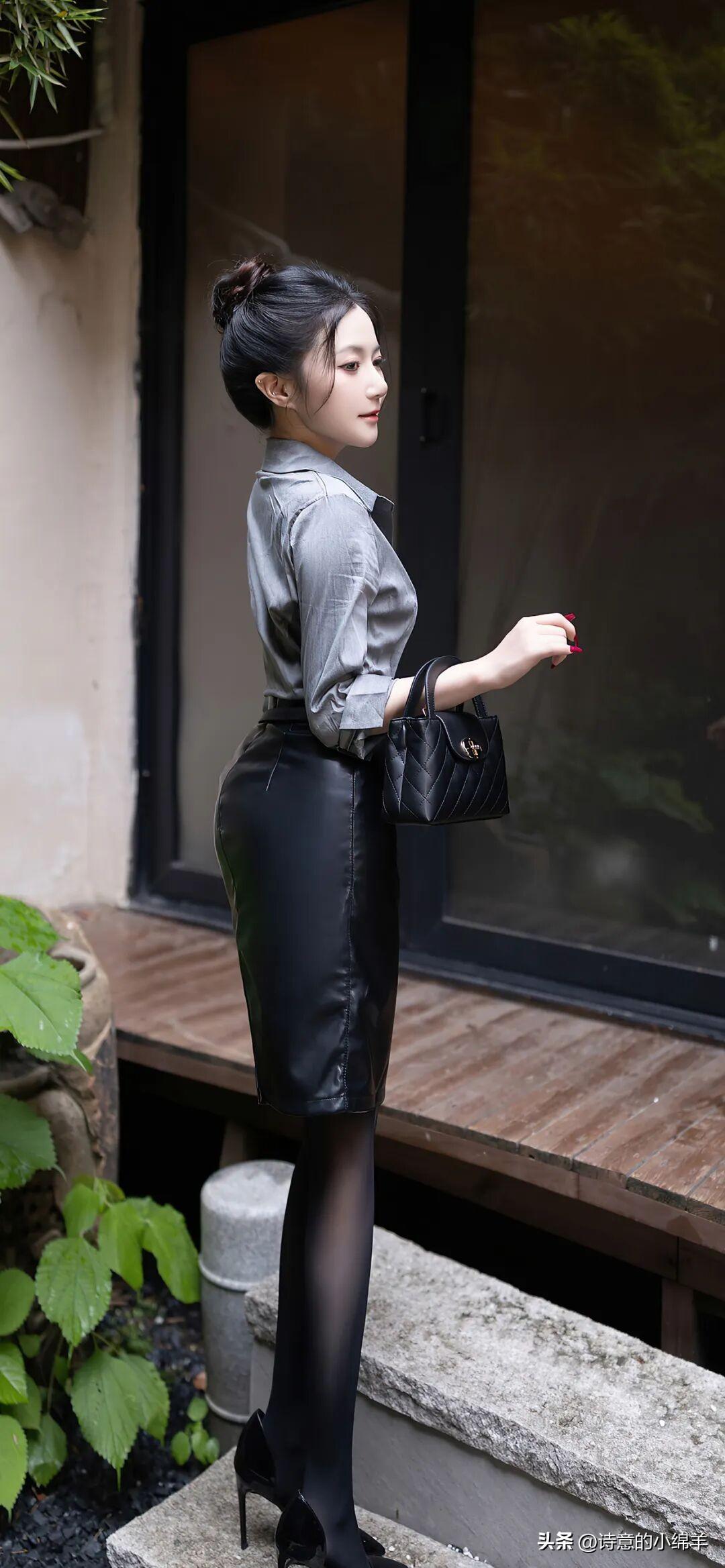 南乔~气质黑皮裙