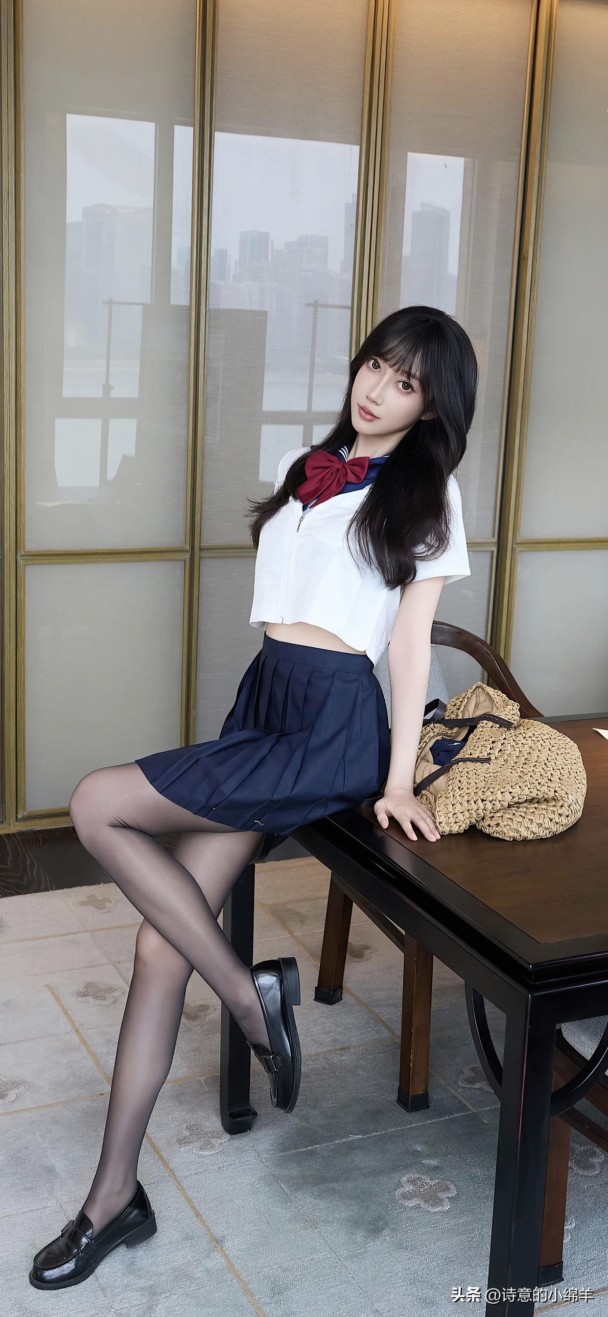 玥儿玥~“今天是学院风限定✨ 白衬衫+百褶裙的夏日标配,连空气都变青春啦~”