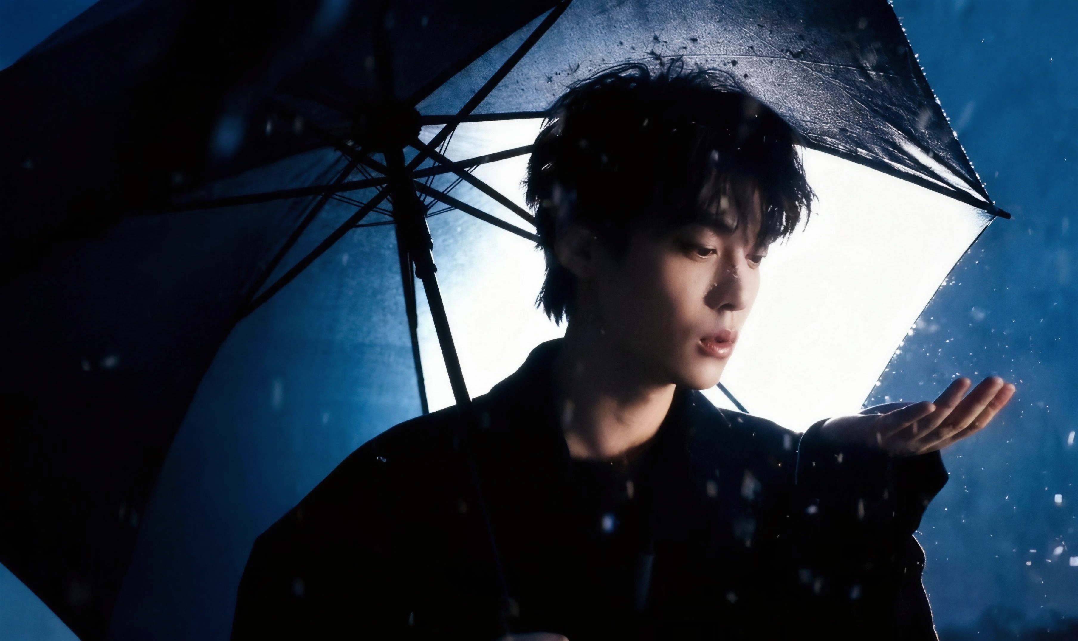田栩宁雪中执伞氛围感的神