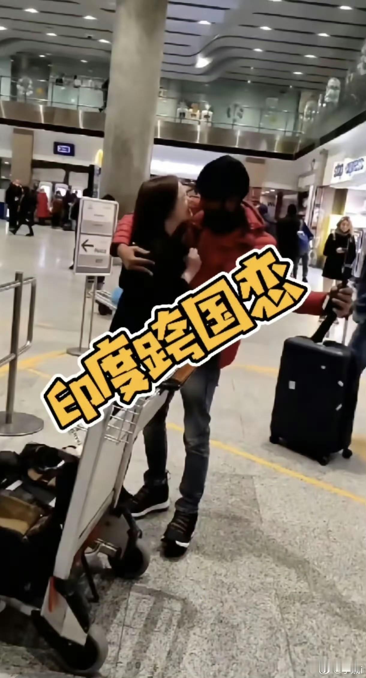 喜相逢!在机场终于见到了印度男友,幸福喜悦之情溢于言表,估计是印度男友免了她的彩礼吧! 美女的喜悦心情大家能够理解吧!