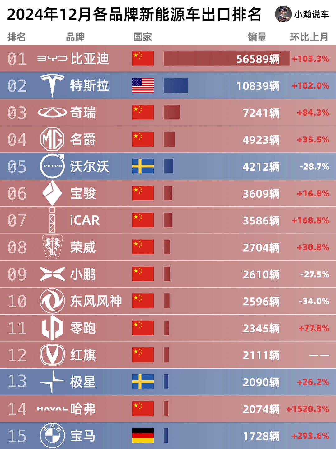 12月出口榜:出海受阻,比亚迪逆势创新高