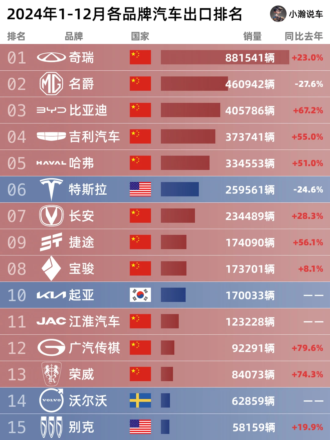 受区域型贸易保护政策影响,12月中国品牌的海外销量整体依旧呈下降趋势。而比亚迪却逆势实现增长,不仅告别海外版“比三万”,超5万的销量更是创造历史新高。这大大归功于其泰国和乌兹别克斯坦两大海外工厂对整个东南亚和中亚五国的辐射。 紧随比亚迪的是一众国产新能源品牌在海外的强势增长。进入2025年,在国内车市内卷的同时,这场掀起于中国的新能源革命还将怎样影响世界,我们一起期待!