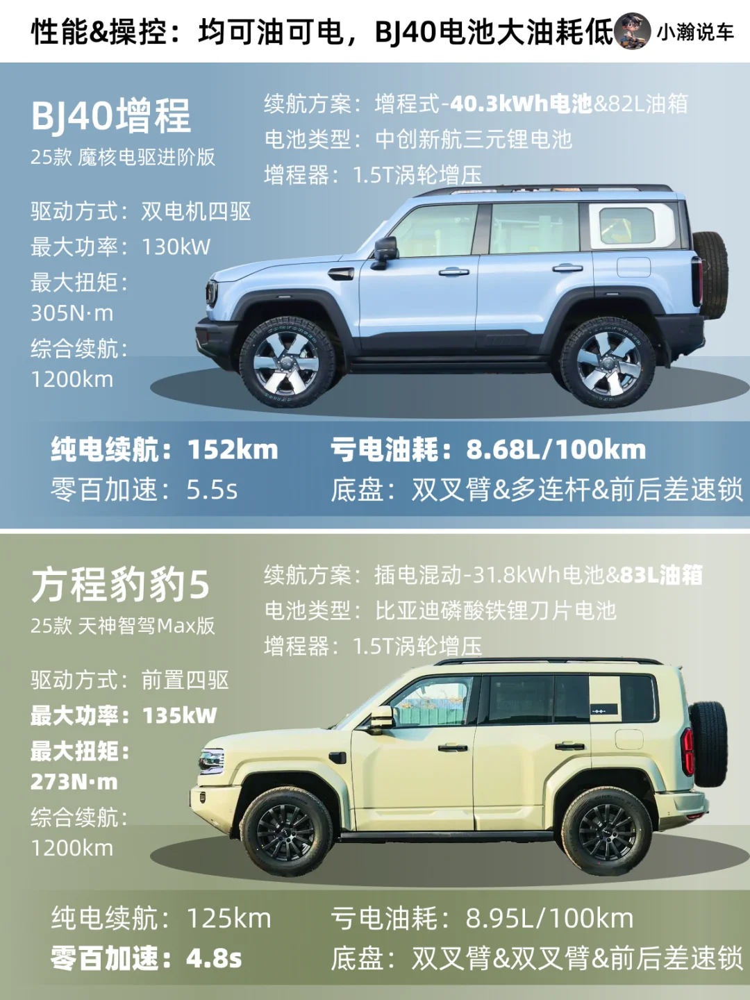 北京越野BJ40增程正式上市了,售价17.98万-19.98万元,这个价格你觉得够香嘛? 🚙方盒子外观设计配上40度大电池的增程,双电四驱和越野两把锁确保了其越野的通过性。车内还配备副驾零重力座椅、副驾娱乐屏、8155芯片车机和Infinity扬声器。还可选装车载无人机! 这样的配置组合不到20万,你觉得你还会考虑方程豹豹5嘛?
