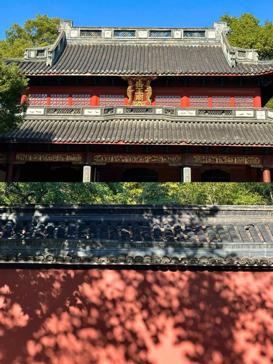 ✔️玛瑙寺:入口大门处与西湖形成一个画框。