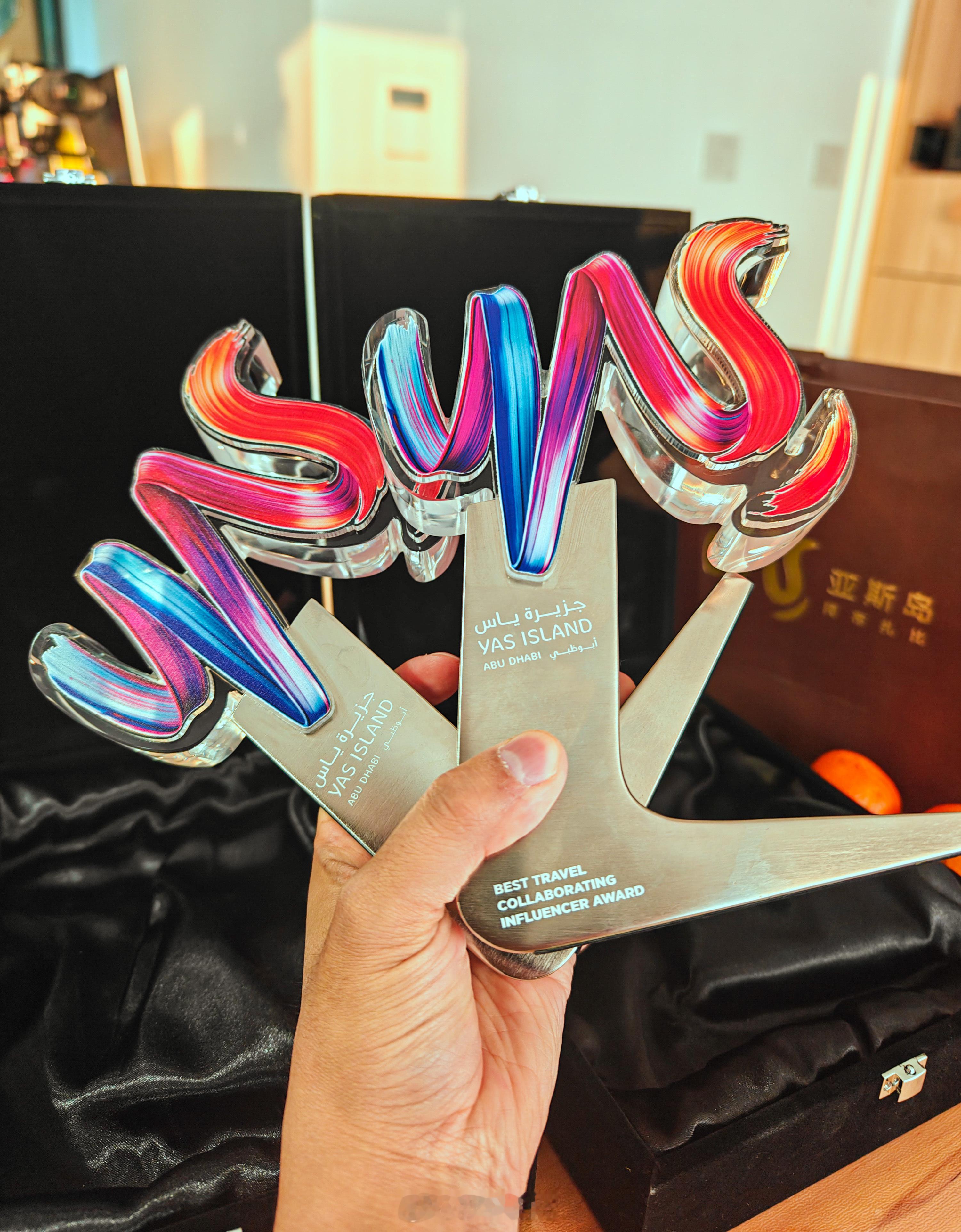 一直没空秀一下得的奖,领导代领🏆阿布扎比亚斯岛的答谢午宴,奖杯超级重🎉跟我自驾游裙摆在野