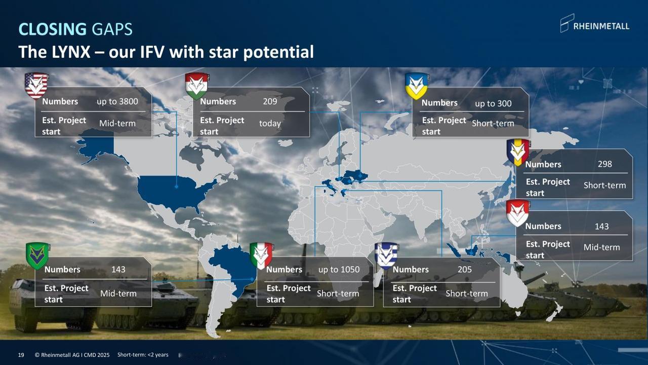 莱茵金属透露在乌克兰生产Lynx IFV战车的计划! Lynx IFV-何时以及有多少将抵达?莱茵金属公司已经宣布了交付的开始日期和Lynx IFV的乌克兰总数,但前提是必须获得必要的资金。 德国武器制造商莱茵金属公司透露,计划向乌克兰武装部队提供最新的山猫步兵战车,以及在乌克兰生产火炮弹药的开始日期。 德国莱茵金属公司在一次公开演讲中概述了这些计划,阐述了其到2030年的发展愿景。然而,这不是一个正式的订单,因为没有资金分配用于在乌克兰生产Lynx IFV。 最有可能的是,这反映了莱茵金属的内部愿景,因为演示文稿不仅包括乌克兰,还包括当前的运营商,现有客户和潜在的未来客户。总的来说,莱茵金属公司估计可以向乌克兰供应多达300台。 关于这一订单的时间安排,虽然提到了最多两年的短期前景,但它显然是指开始而不是完成交付。这些订单计划于2026年第一季度开始。这在另一张幻灯片中显示: 与此同时,计划在同一期间在乌克兰生产火炮弹药的项目取得进展。然而,这一时间轴与莱茵金属首席执行官Armin Papperger宣布的最后期限不一致,后者将于夏季或2026年底完成。 IFV交付意大利预计也将在近期开始。这是一份非常重要的合同,涉及1,050辆Lynx IFV,需要十多年的时间才能完成。 巴西被列为潜在客户之一,未来五年可能增加143辆汽车。自2024年夏天以来,该国国防部一直在收集和评估装甲车的建议,尽管65辆坦克和78辆步兵战车的计划已经知道。据报道,莱茵金属公司提交了一个项目,供应Lynx步兵战车和配备120毫米火炮的轻型坦克。还提到可能与印度尼西亚签订合同,但目前没有其他信息。匈牙利武装部队的Lynx IFV 美国可能成为Lynx的主要客户,计划购买多达3,800辆IFV。为了获得这份合同,莱茵金属必须超越通用动力陆地系统公司,后者也已进入最后阶段。目前,每个决赛选手必须在2026年第四季度之前生产出7辆IFV原型车。这些将被评估,五角大楼将作出最终选择的M 2布拉德利的替代品。 因此,匈牙利现在是唯一一家仍在接收Lynx IFV的运营商,订购了209辆。最近做出这一决定的意大利和罗马尼亚也被算作客户,总共约有1,350辆IFV。 希腊仍然是一个潜在的买家,计划购买205辆IFV,而乌克兰的目标是购买300辆。潜在买家包括巴西、印度尼西亚和美国,总共有4,000多个单位。与此同时,向匈牙利、意大利、罗马尼亚、乌克兰和美国的交付必须根据本地化条款进行。
