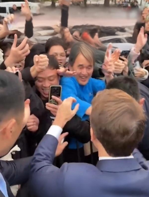 【马克龙在巴黎被抗议者追着跑,在川大却让学生“跑慢点”!】 最近法国街头还在为养老金闹得不可开交,马克龙转身就在川大校园里上演“百米冲刺, 为了和围栏外的学生击掌,他一路小跑,边跑边用中文喊“你好”,最后还调皮抱怨:“你们跑太快了! 从欧洲的焦头烂额到中国的青春笑脸,这趟访华行程,怕是他近期最轻松的瞬间了。 网友:这热情,法国街头暂时是看不见了法国马克龙