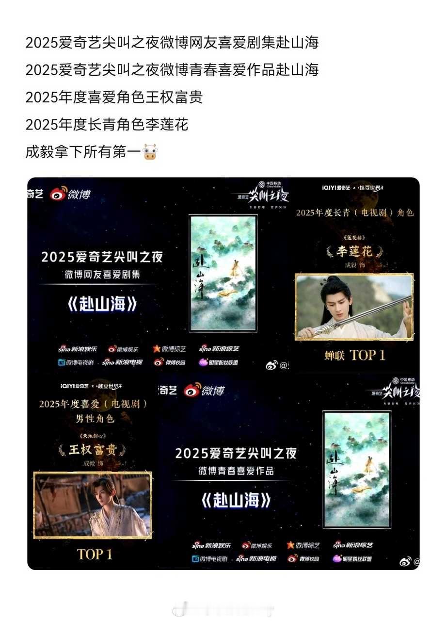 爱奇艺唯一拥有三个破亿角色日榜殿堂史冠历史殿堂史冠第一人成毅🔥