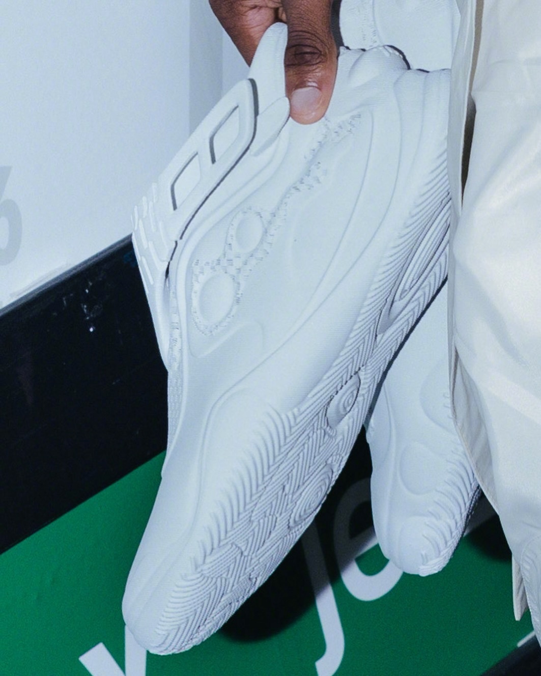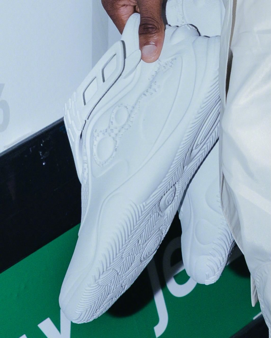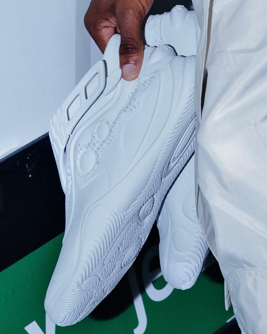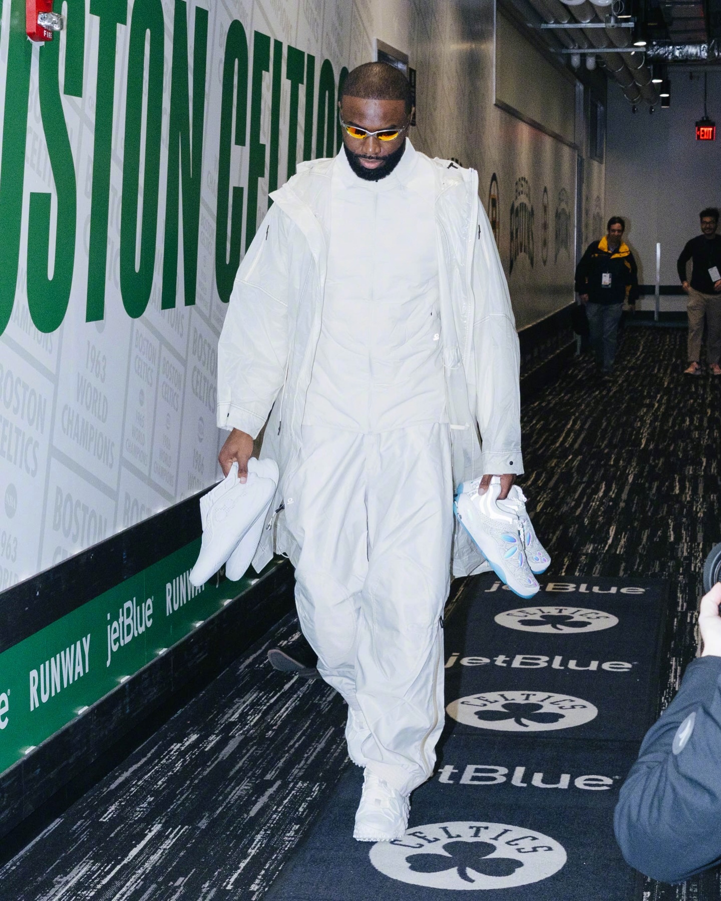 今天杰伦-布朗带上了自己的新一代球鞋741performance V1 3D-printed 来到球馆,这双球鞋是通过3D打印制作的,但目前来看,他比赛没穿这款、提前带出来预热预热。