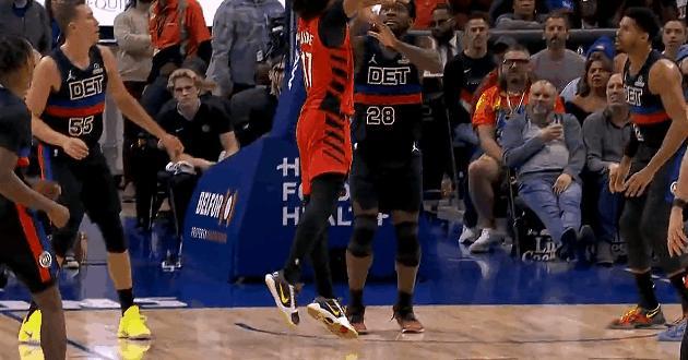 夸张!夏普这记隔扣居然被盖了! 在今天NBA常规赛开拓者对阵活塞的第四节比赛中,夏普接球后高高跃起欲完成惊天隔扣,结果遭到斯图尔特正面封盖! 谁能想到,夏普这球居然还能被盖,斯图尔特不愧是追着老詹满场跑的人,这份胆识与魄力,值得尊敬!