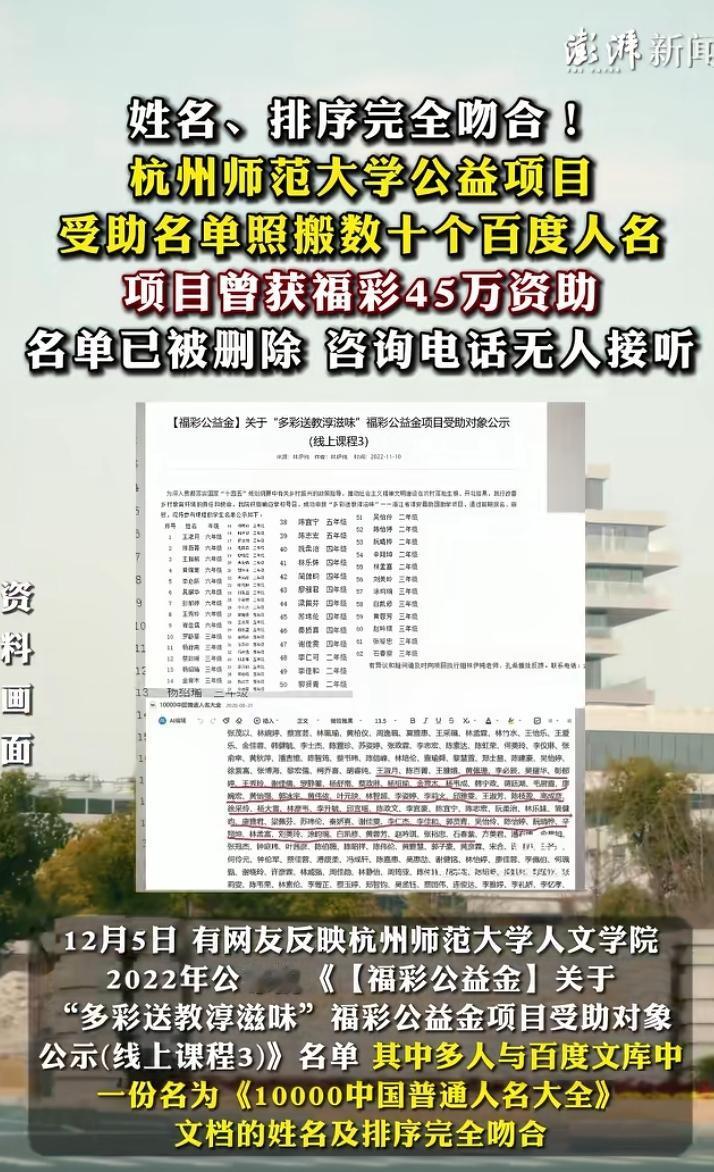 几十个百度姓名库的名字领走杭州师范大学45万公益资金。以前贪污腐败至少极力掩盖,现在它们连装都懒得装了。 这种明目张胆是日积月累长出来的,是周围的大环境熏出来的,它们对于贪腐这事已经麻木了。
